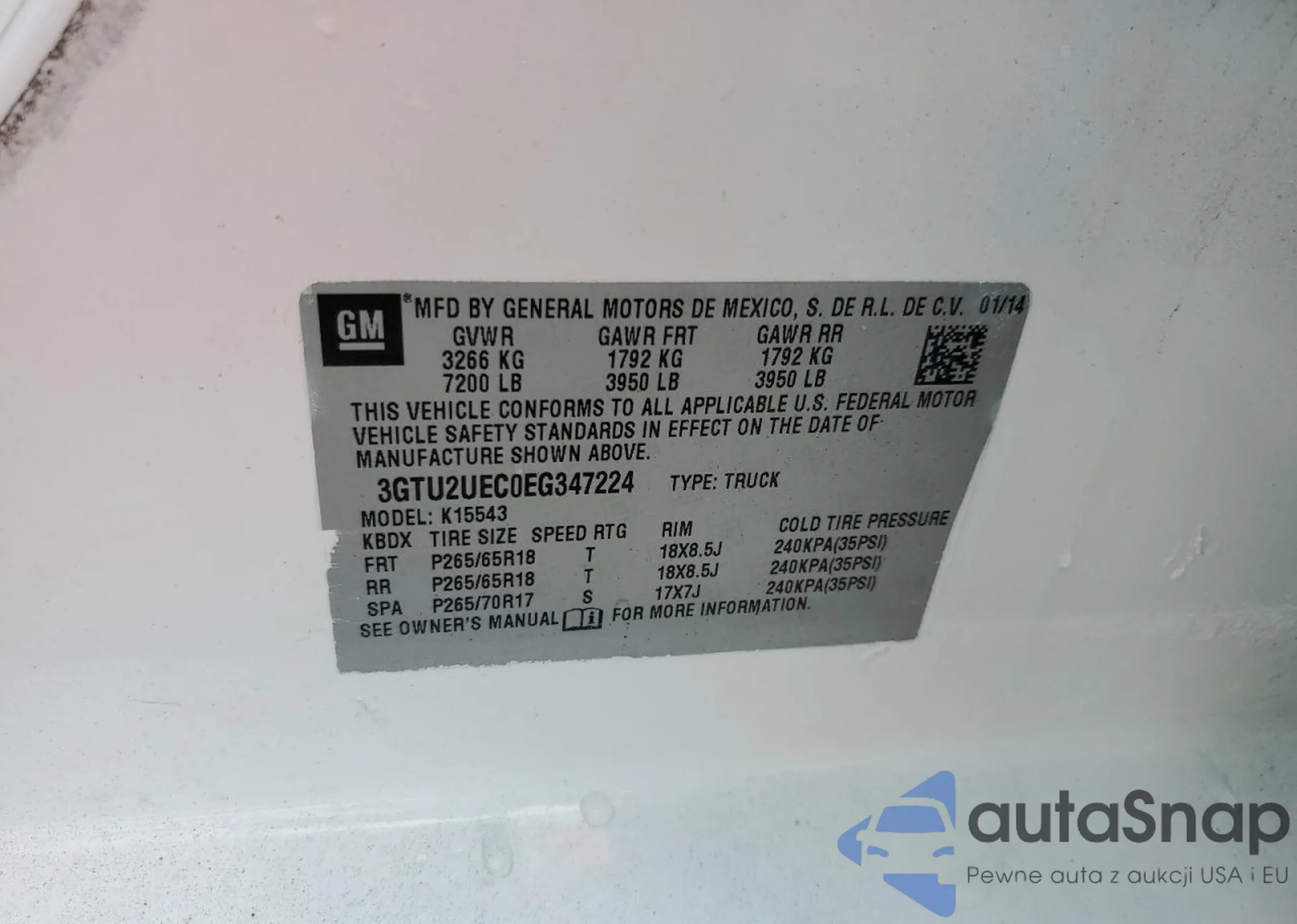 VIN: 3GTU2UEC0EG347224