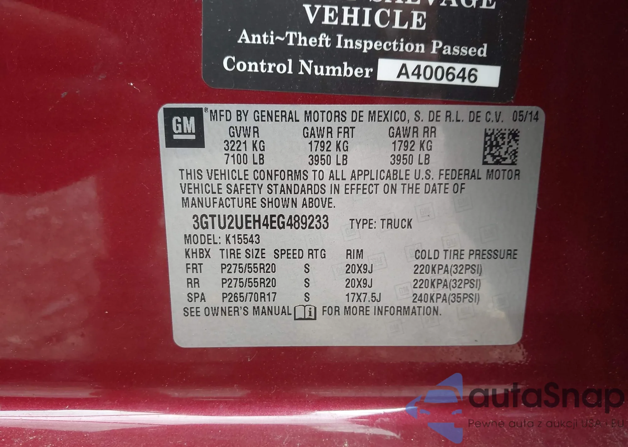 VIN: 3GTU2UEH4EG489233
