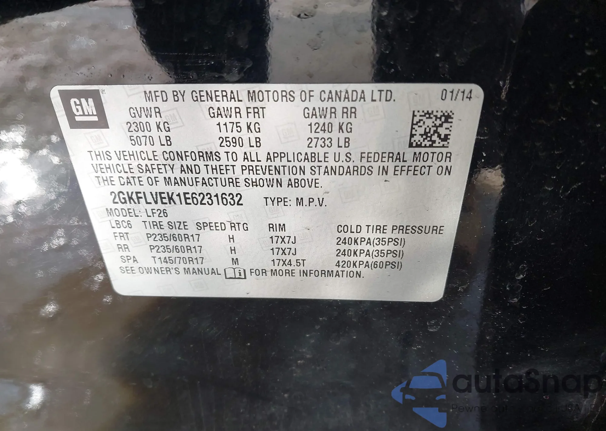 Автомобиль GMC Terrain 2014 (VIN 2GKFLVEK1E6231632) ранее не участвовал в торгах. Документы чистые, пробег соответствует или ниже среднего по рынку. Продаётся страховой компанией — рекомендуем покупку. Доставка в порт займет около 6–8 недель.
