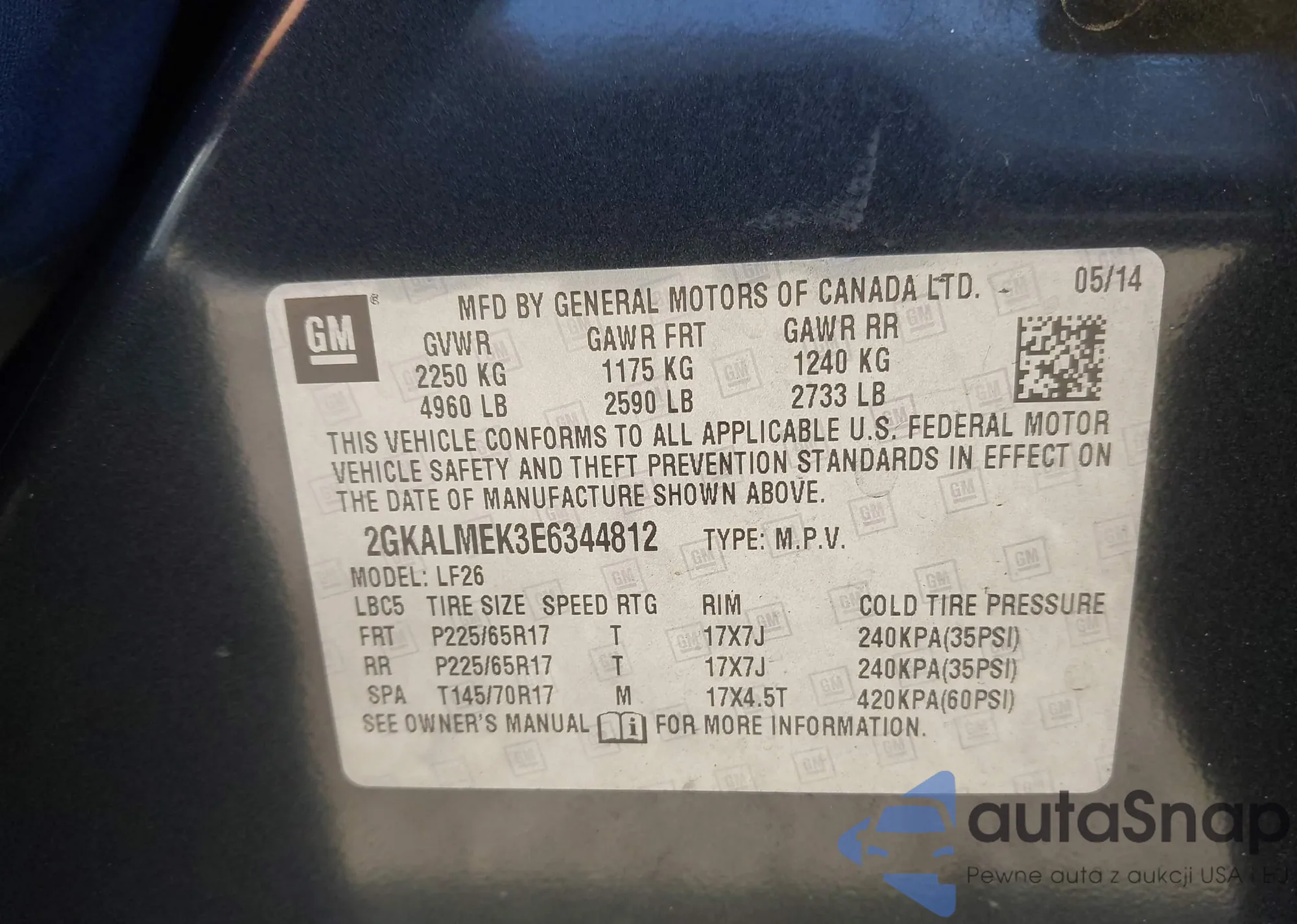 Автомобиль GMC Terrain 2014 (VIN 2GKALMEK3E6344812) ранее не участвовал в торгах. Документы чистые, пробег соответствует или ниже среднего по рынку. Продаётся страховой компанией — рекомендуем покупку. Доставка в порт займет около 6–8 недель.