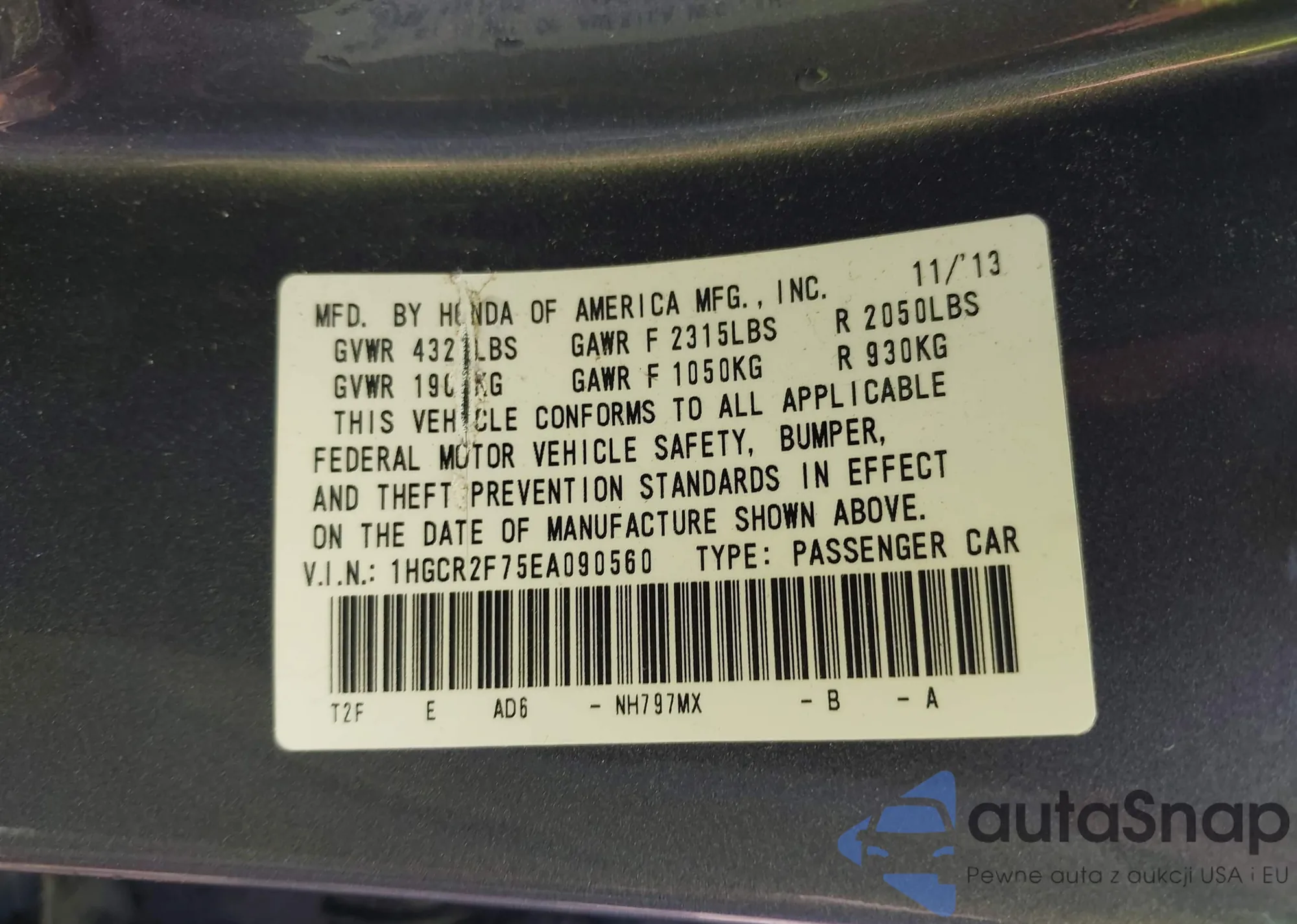 VIN: 1HGCR2F75EA090560