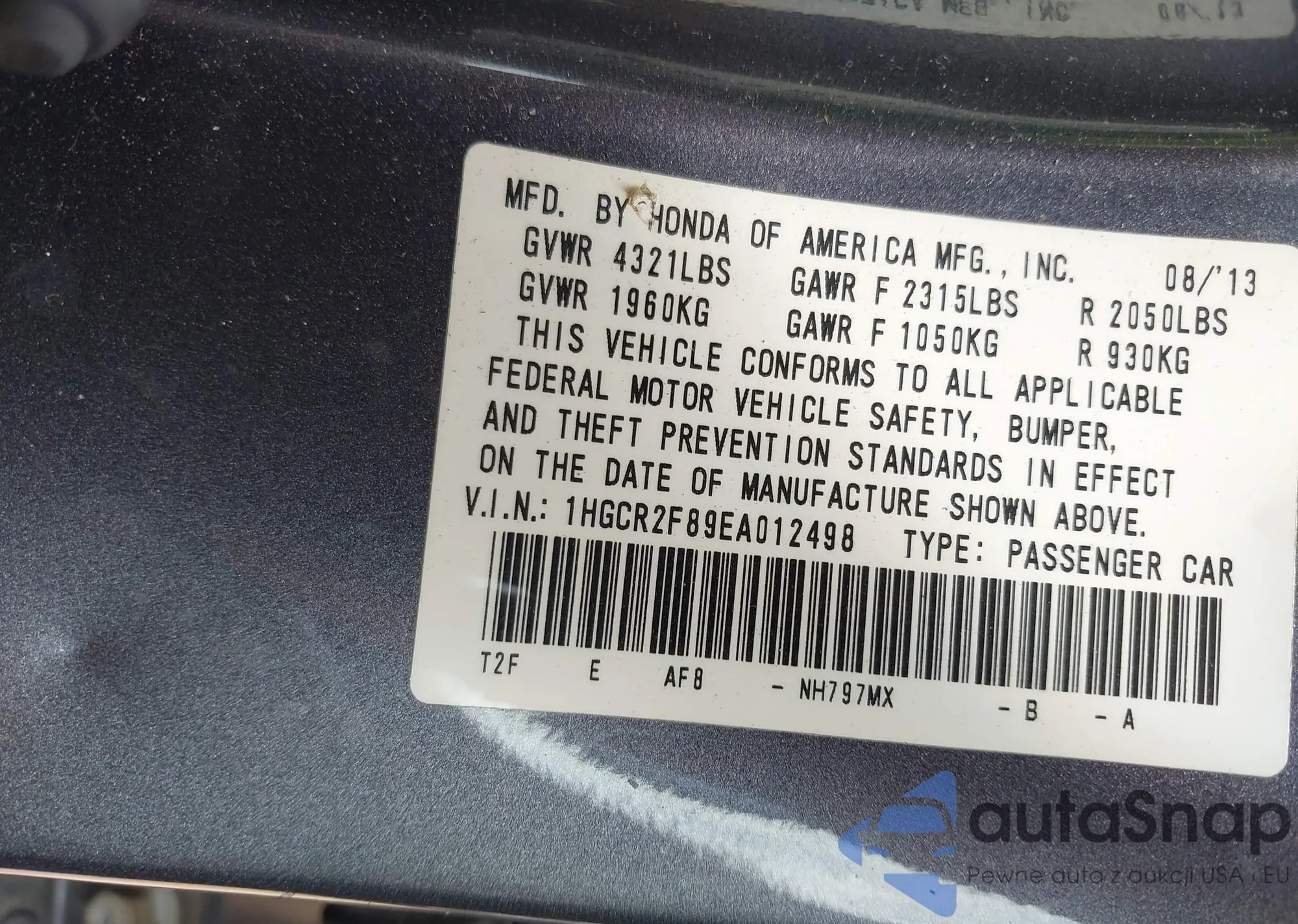 VIN: 1HGCR2F89EA012498