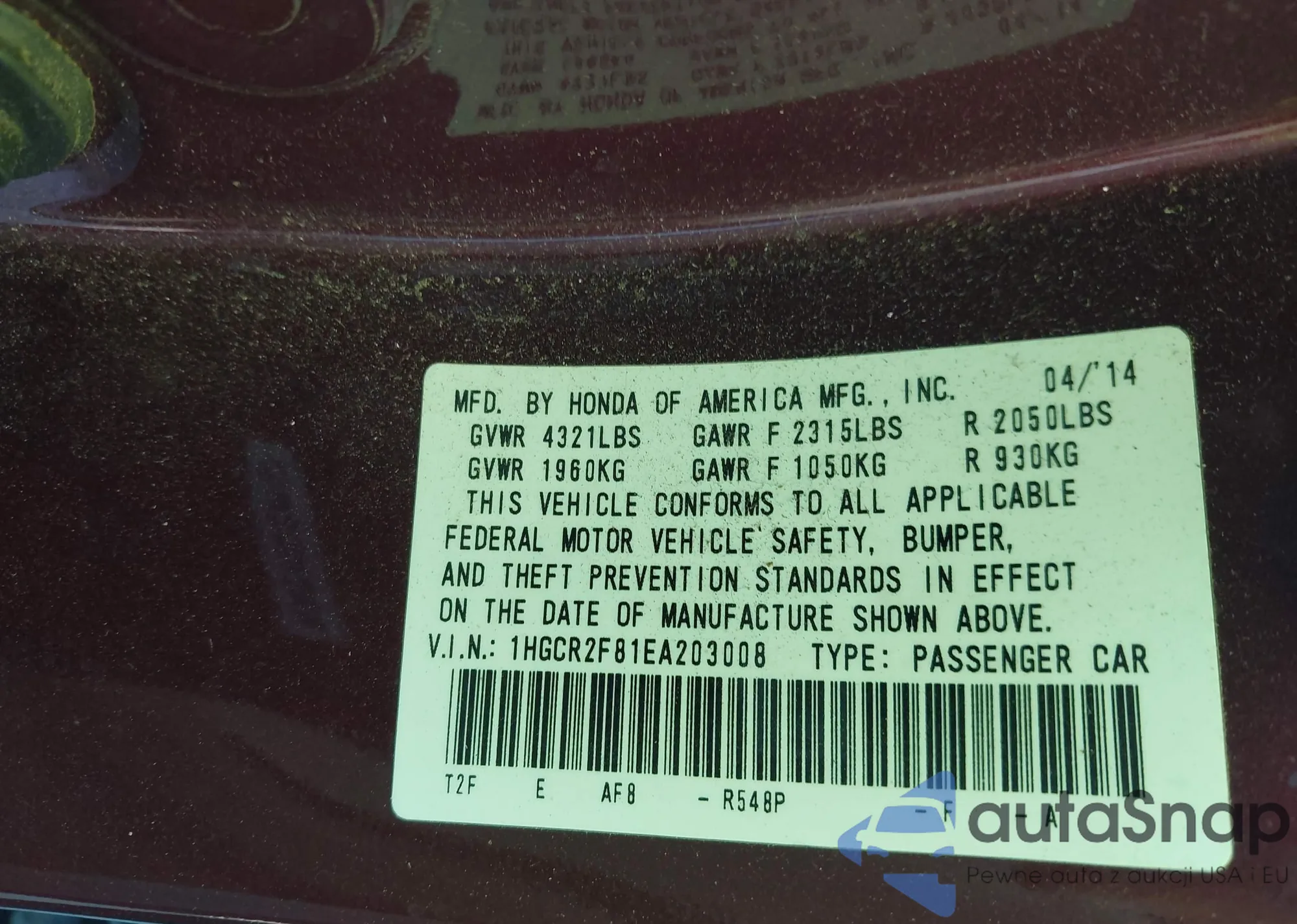 VIN: 1HGCR2F81EA203008