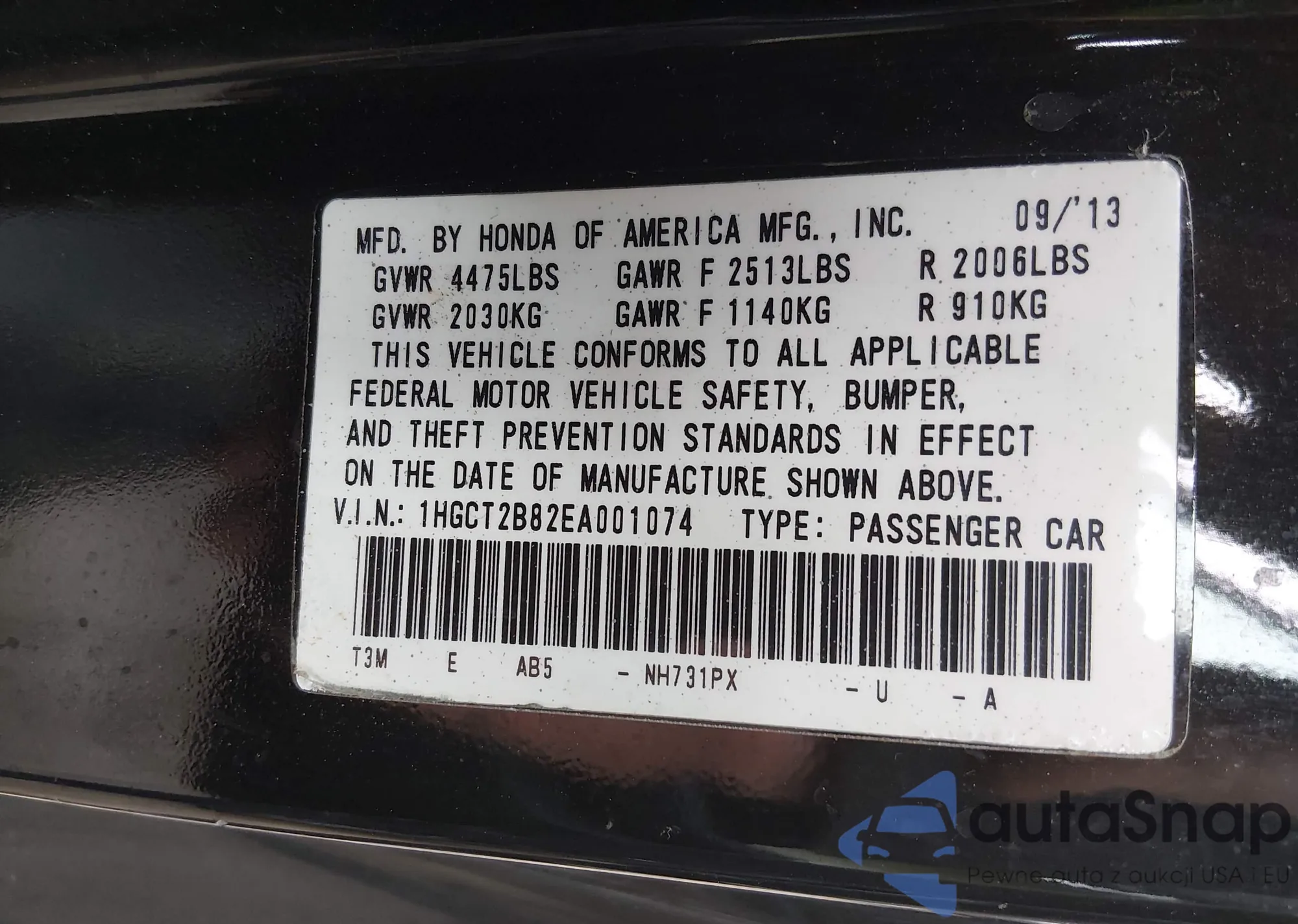 Автомобиль Honda Accord 2014 (VIN 1HGCT2B82EA001074) ранее не участвовал в торгах. Документы чистые, пробег соответствует или ниже среднего по рынку. Продаётся страховой компанией — рекомендуем покупку. Доставка в порт займет около 6–8 недель.
