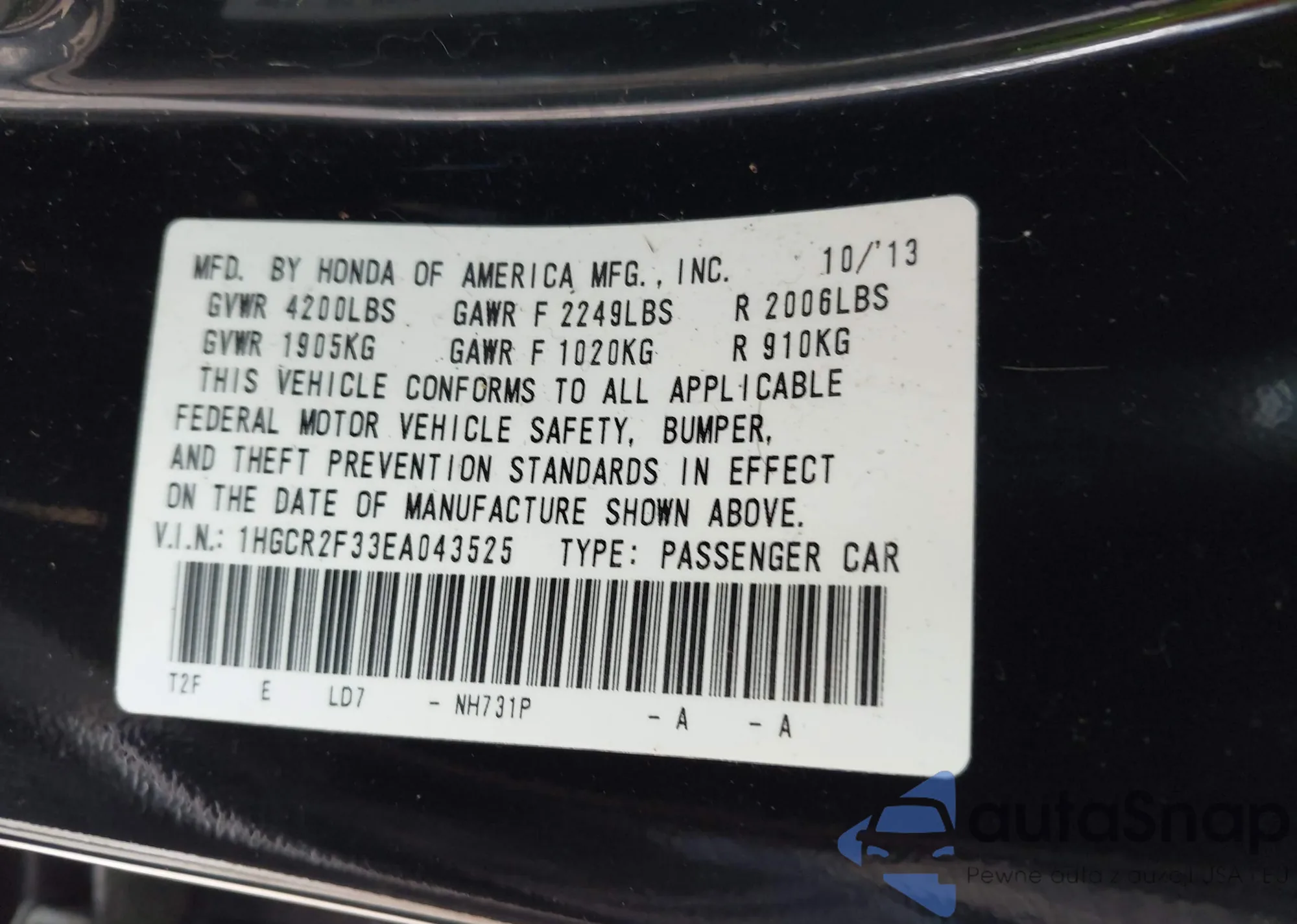 VIN: 1HGCR2F33EA043525