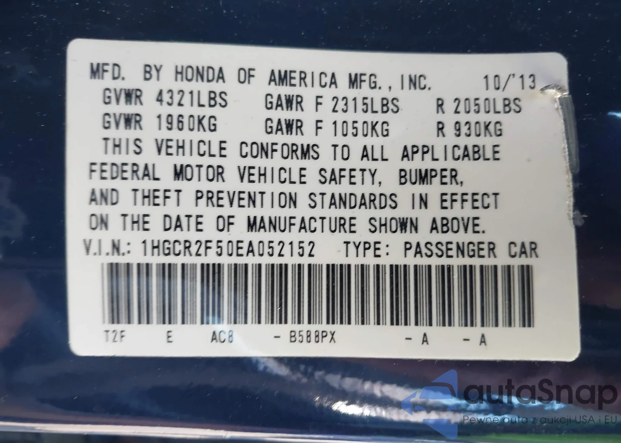 VIN: 1HGCR2F50EA052152
