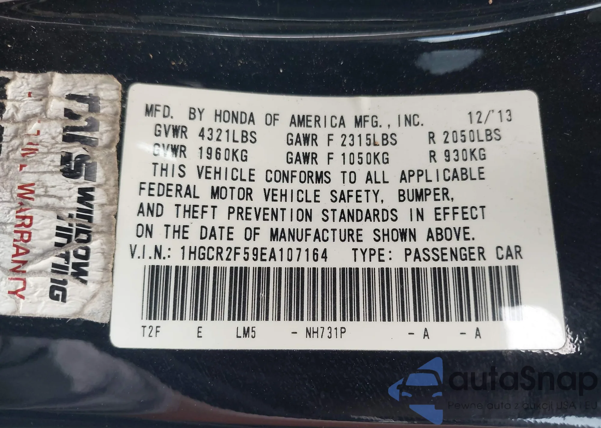 VIN: 1HGCR2F59EA107164
