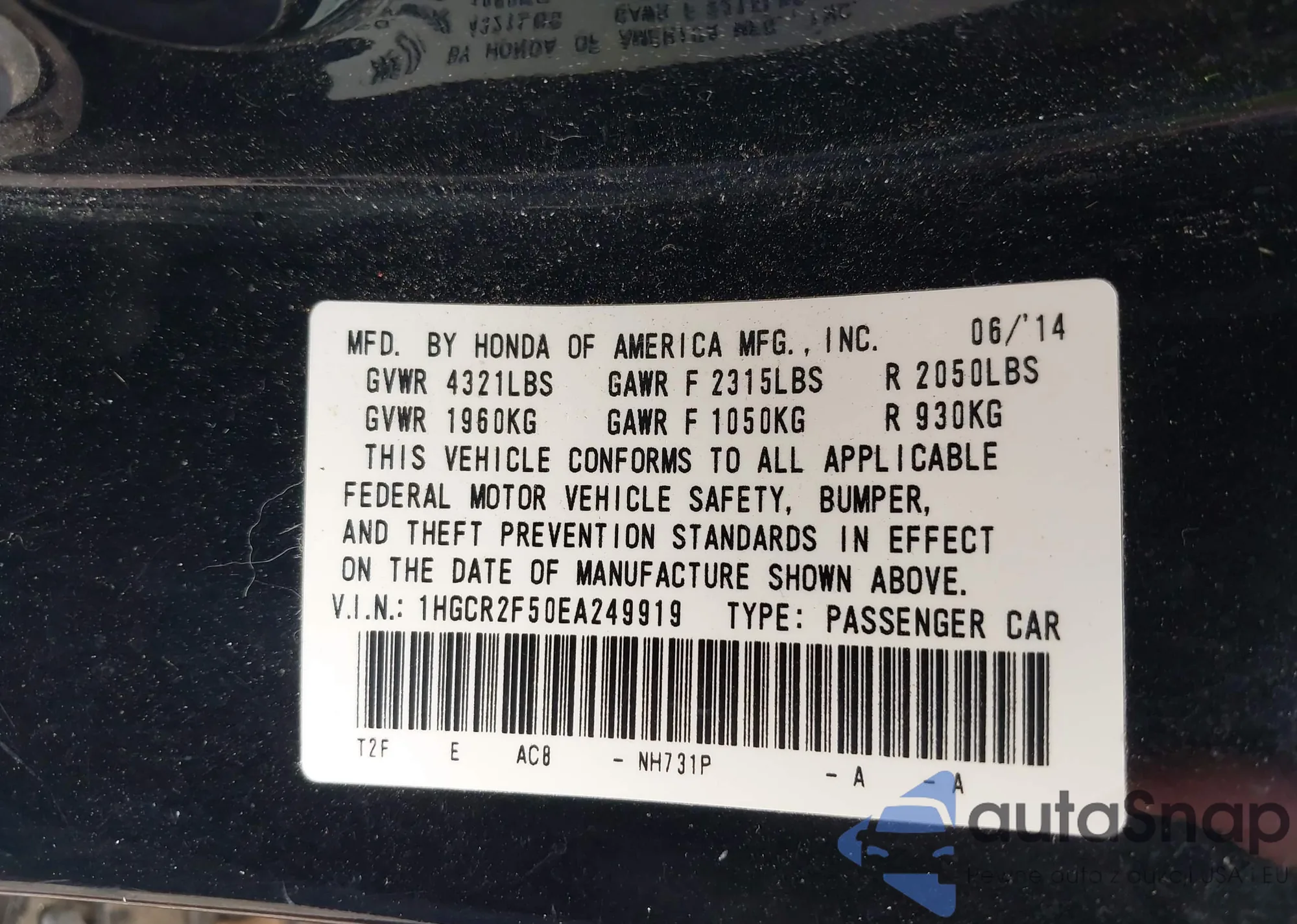 VIN: 1HGCR2F50EA249919