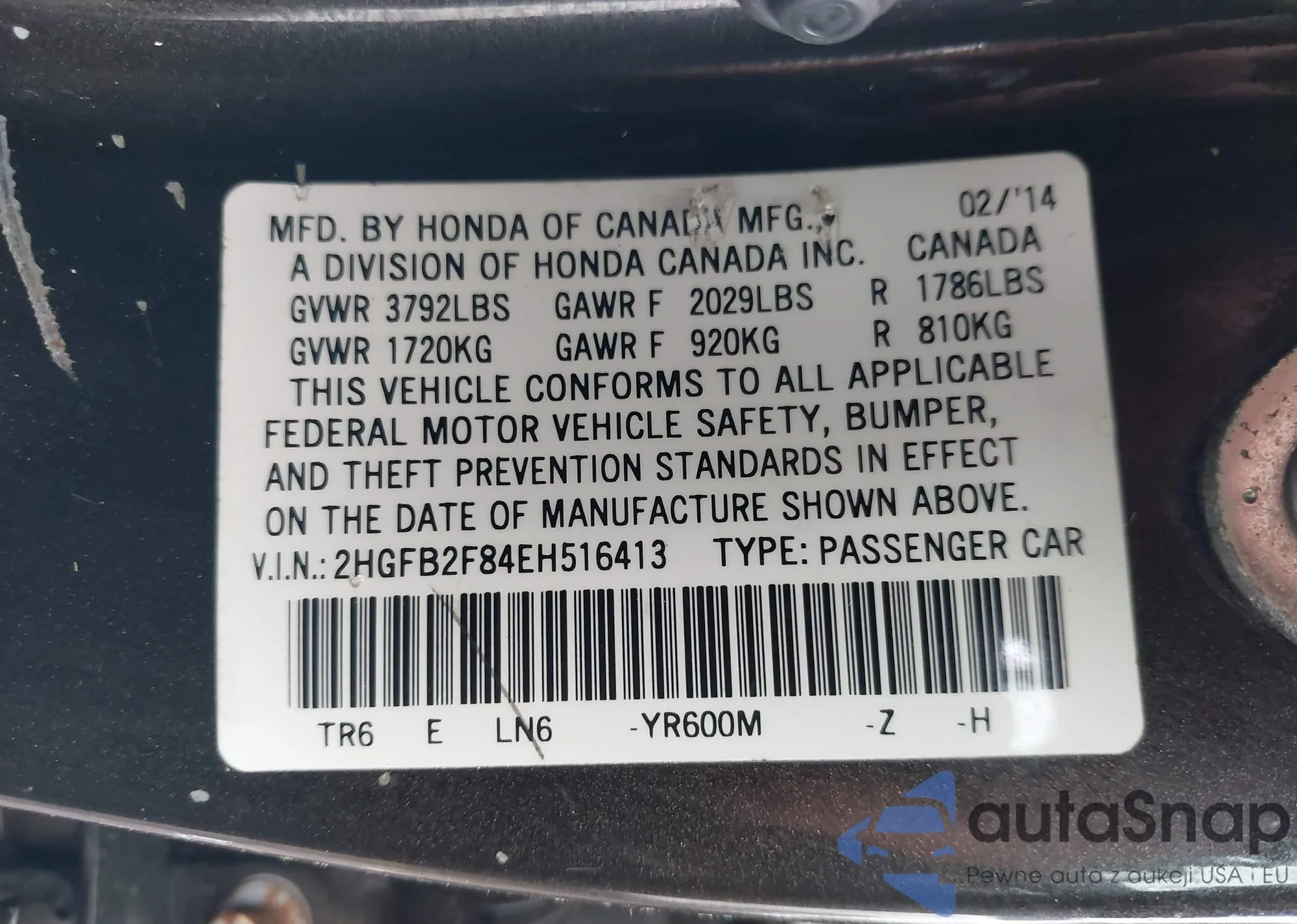 VIN: 2HGFB2F84EH516413