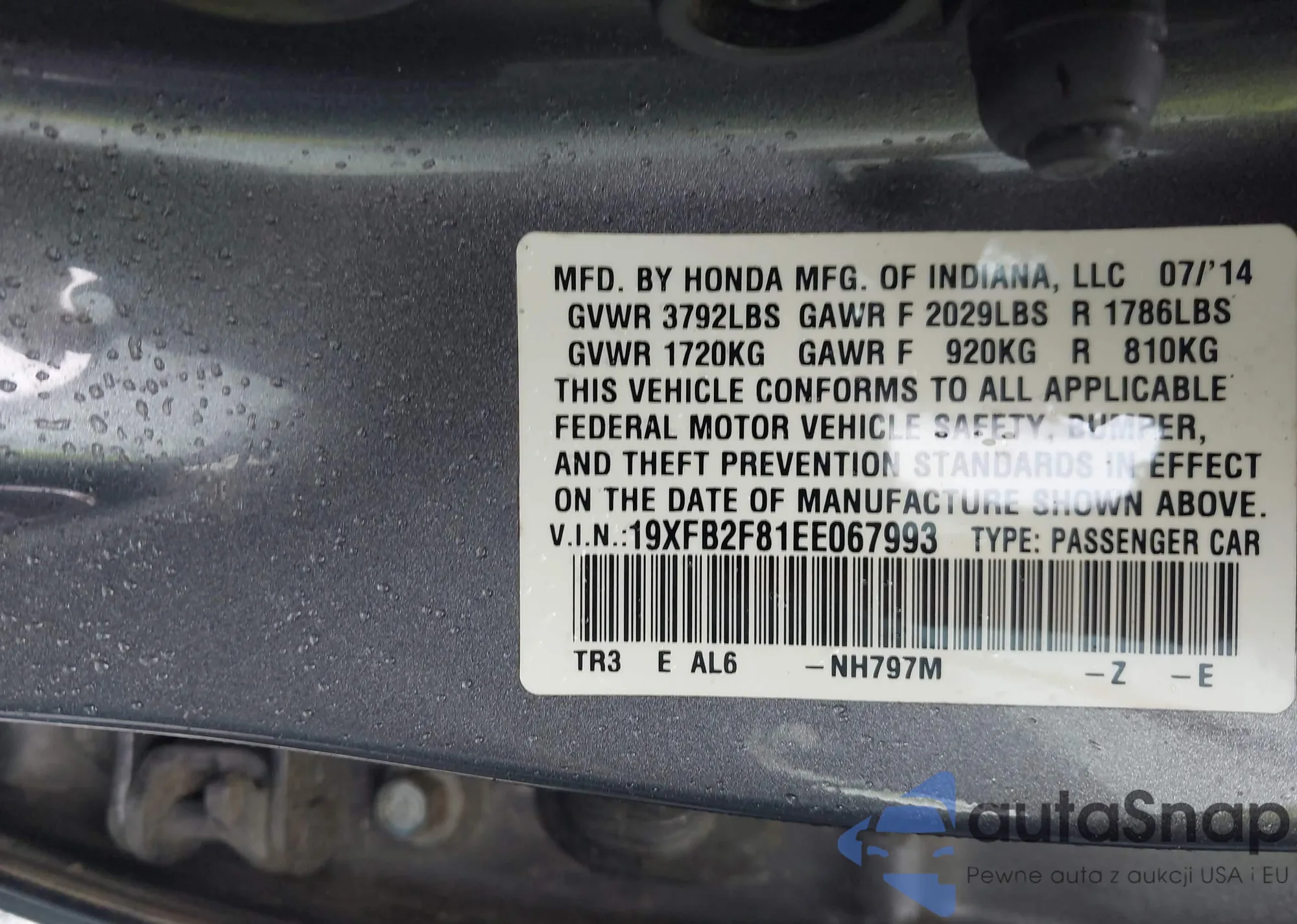 VIN: 19XFB2F81EE067993