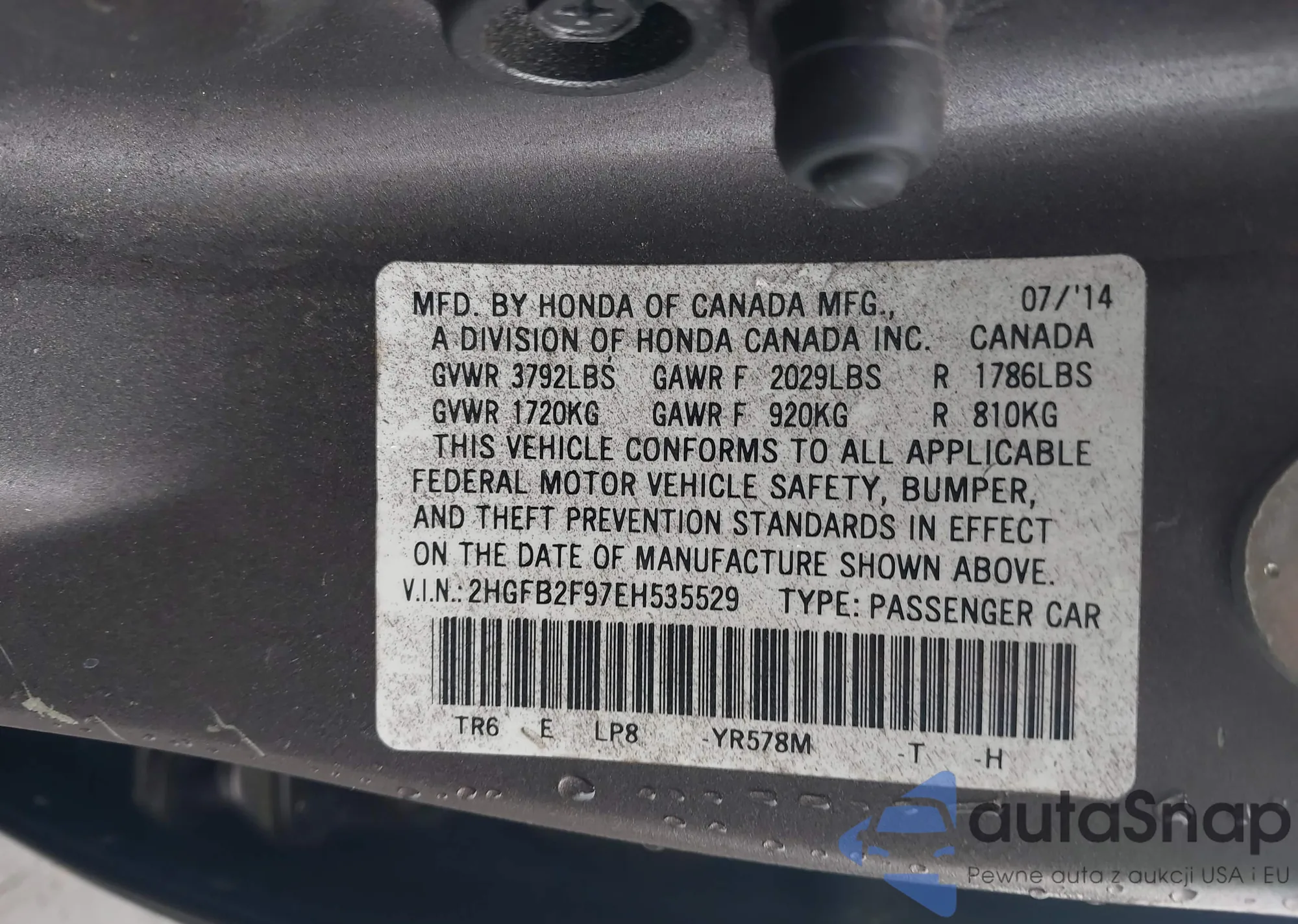 • VIN: 2HGFB2F97EH535529