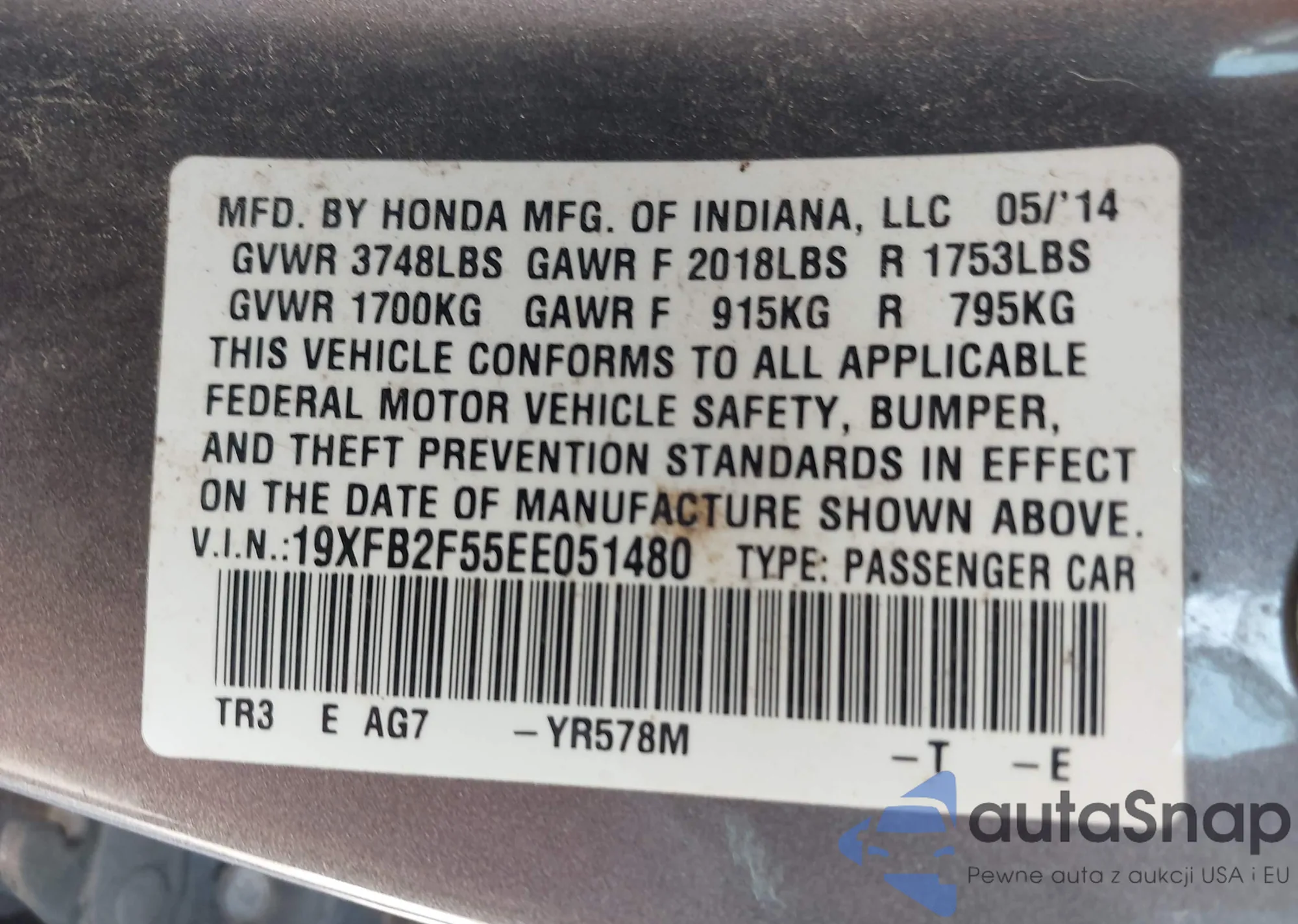 VIN: 19XFB2F55EE051480
