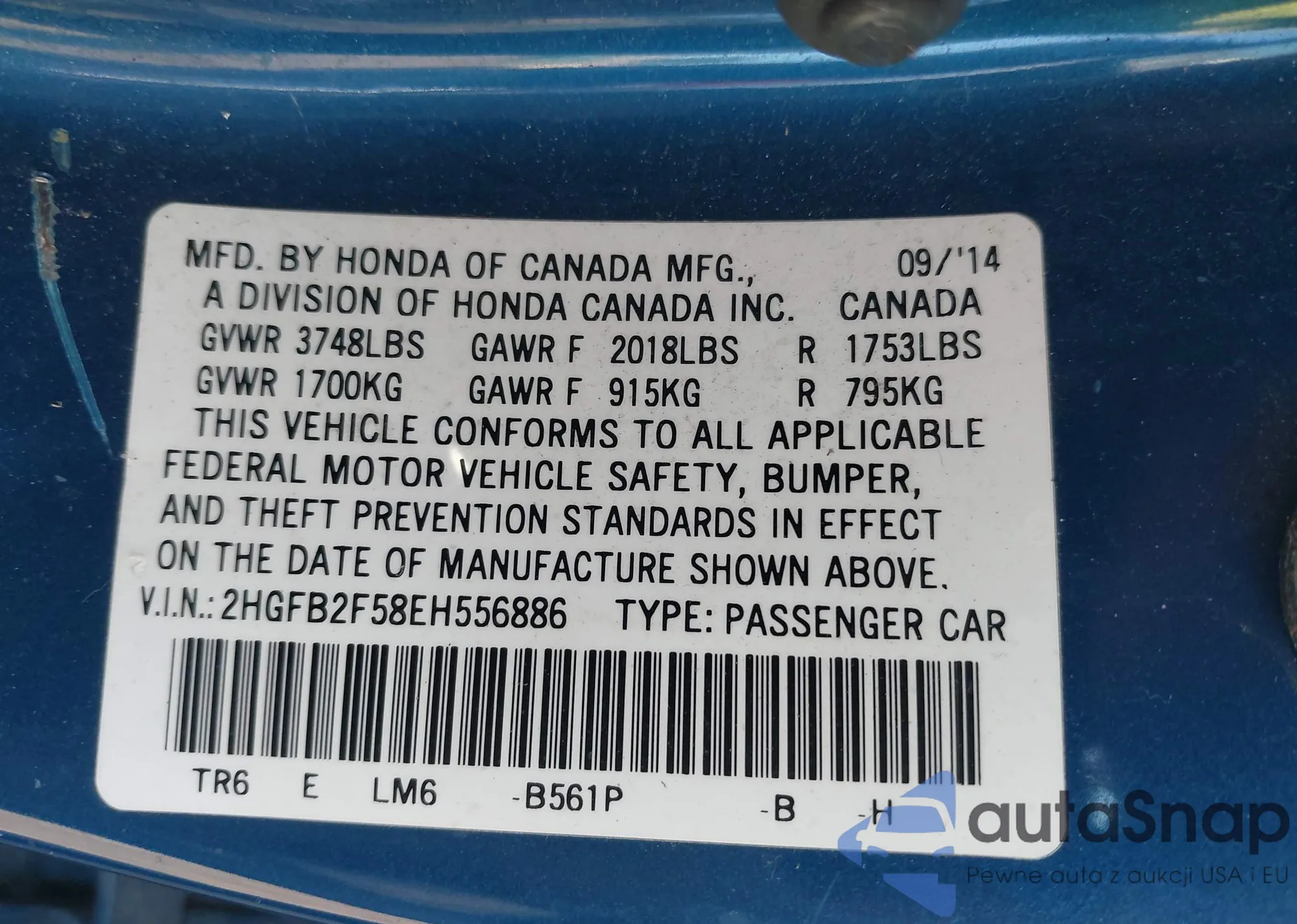 VIN: 2HGFB2F58EH556886