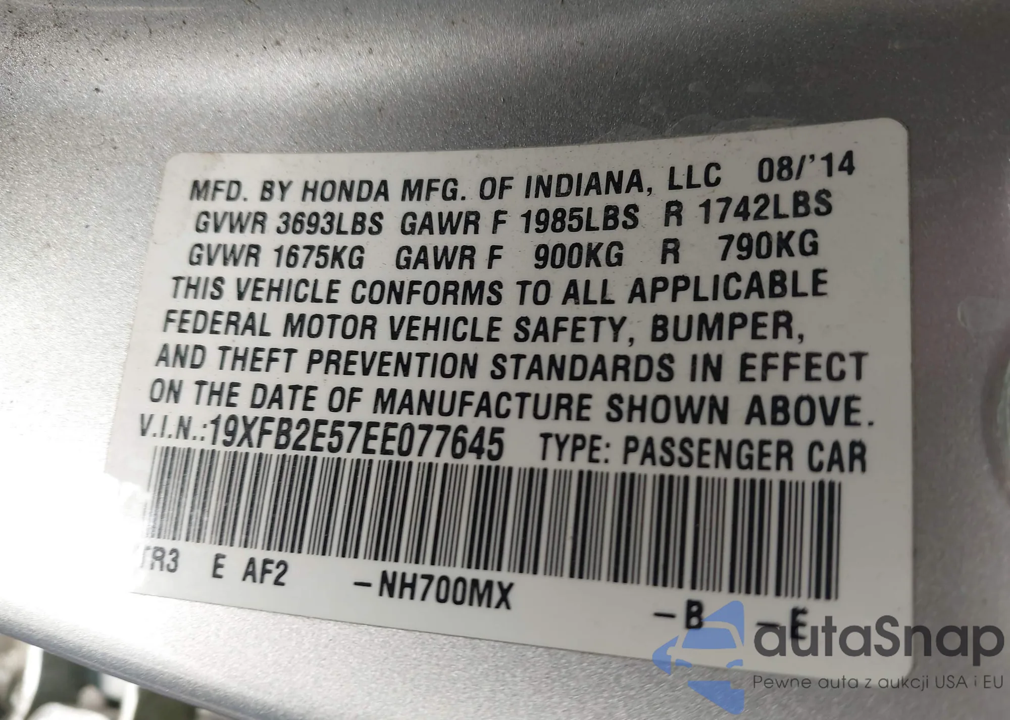 VIN: 19XFB2E57EE077645