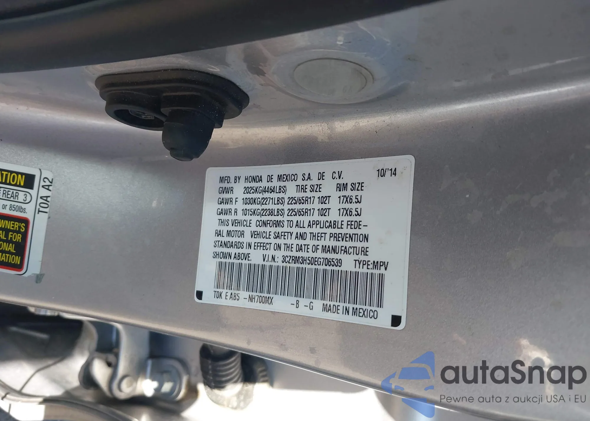 Автомобиль Honda CR-V 2014 (VIN 3CZRM3H50EG706539) ранее не участвовал в торгах. Документы чистые, пробег соответствует или ниже среднего по рынку. Продаётся страховой компанией — рекомендуем покупку. Доставка в порт займет около 6–8 недель.