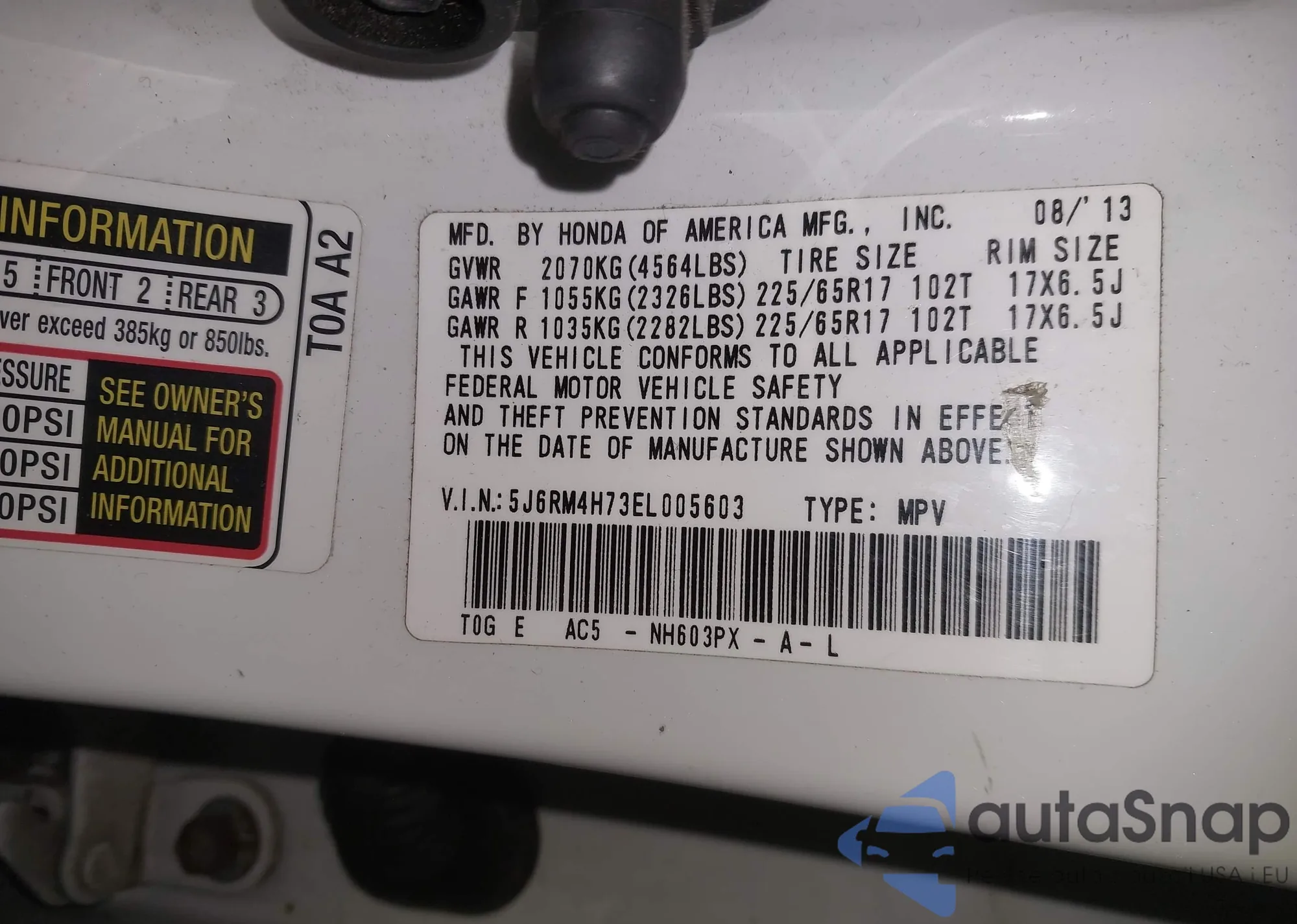 VIN: 5J6RM4H73EL005603
