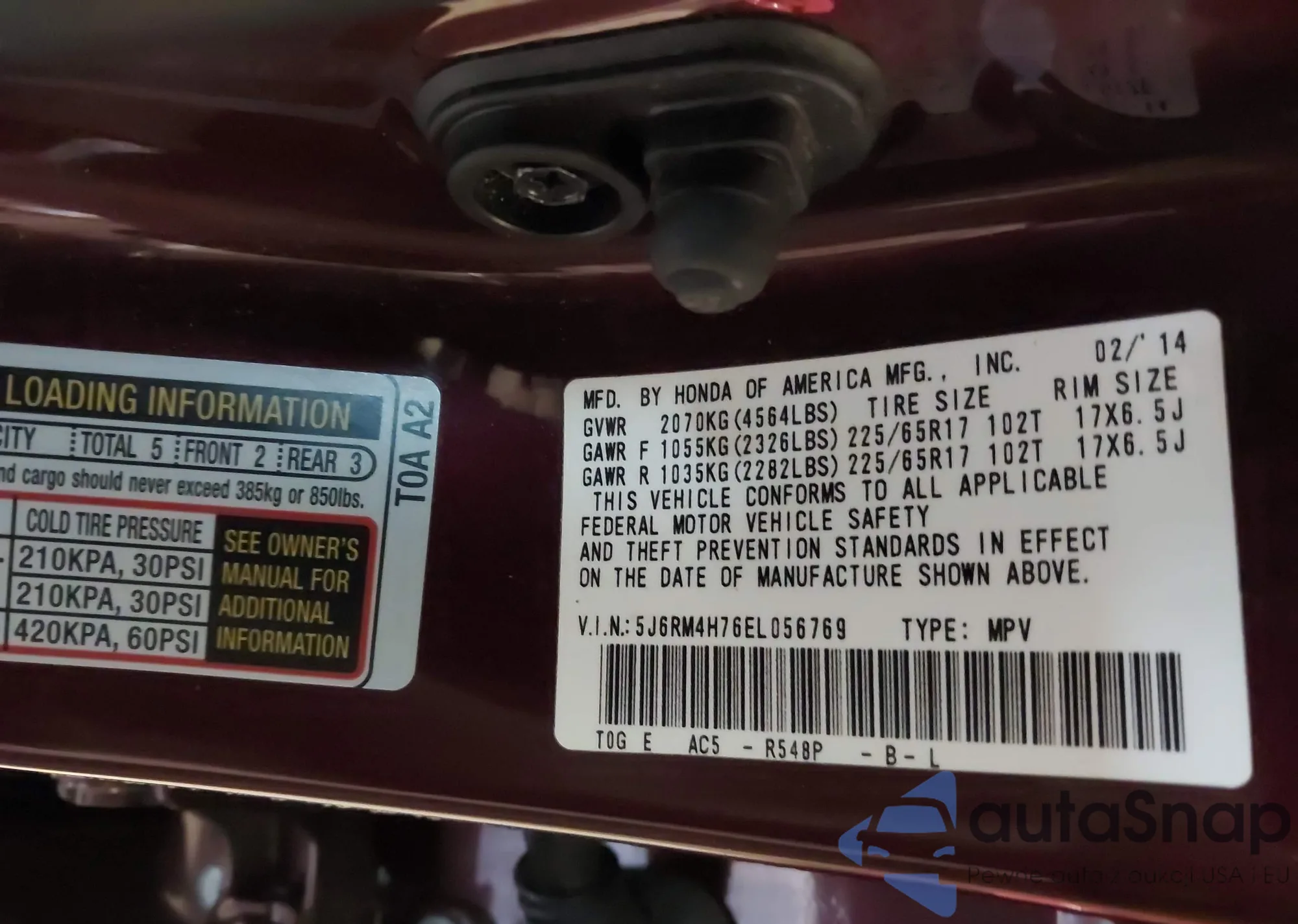 VIN: 5J6RM4H76EL056769