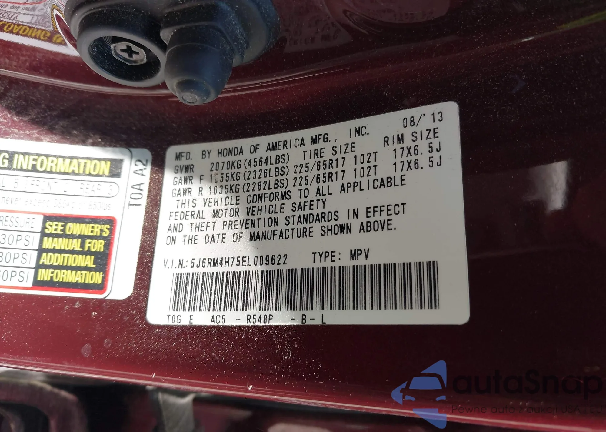VIN: 5J6RM4H75EL009622