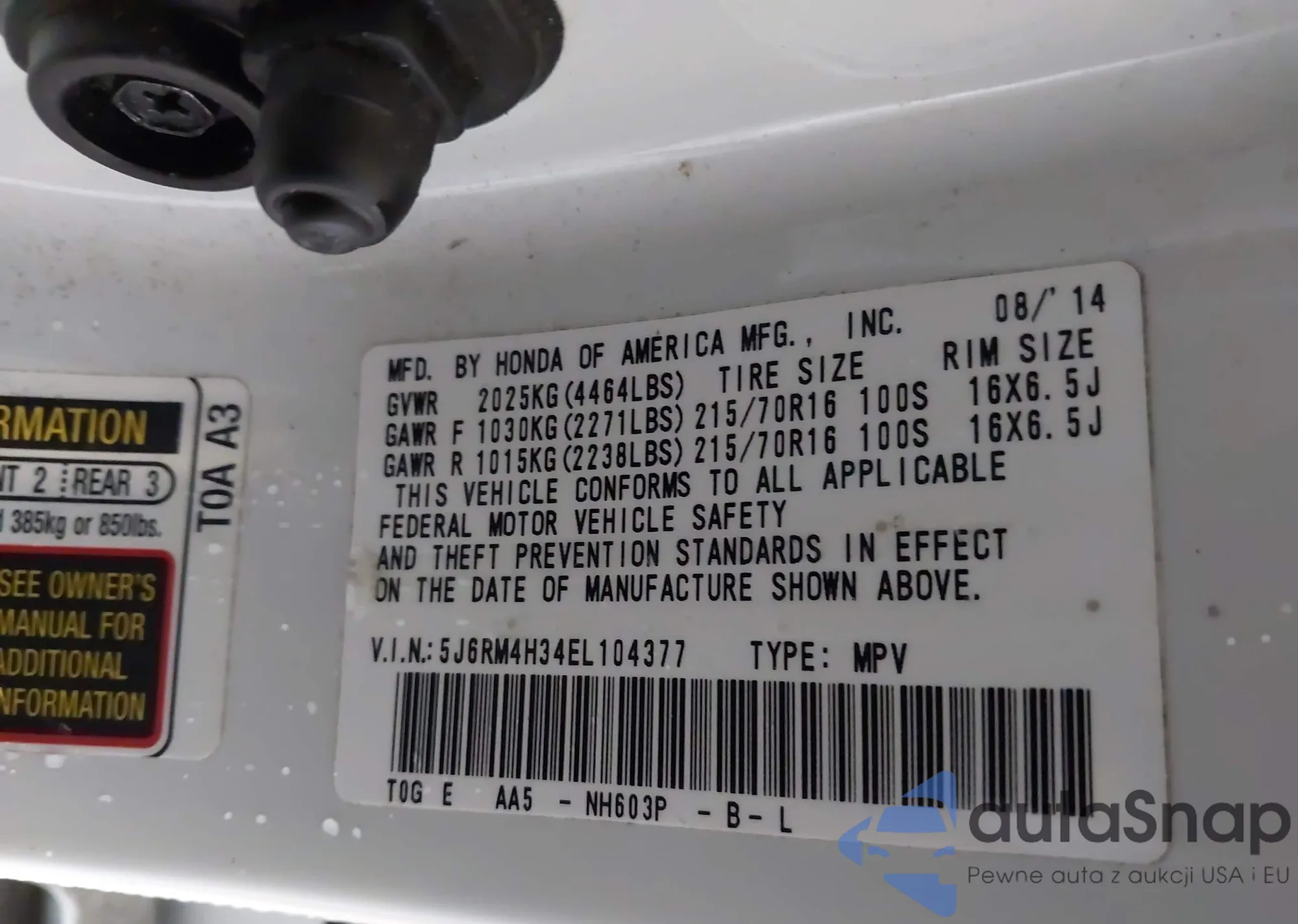 VIN: 5J6RM4H34EL104377