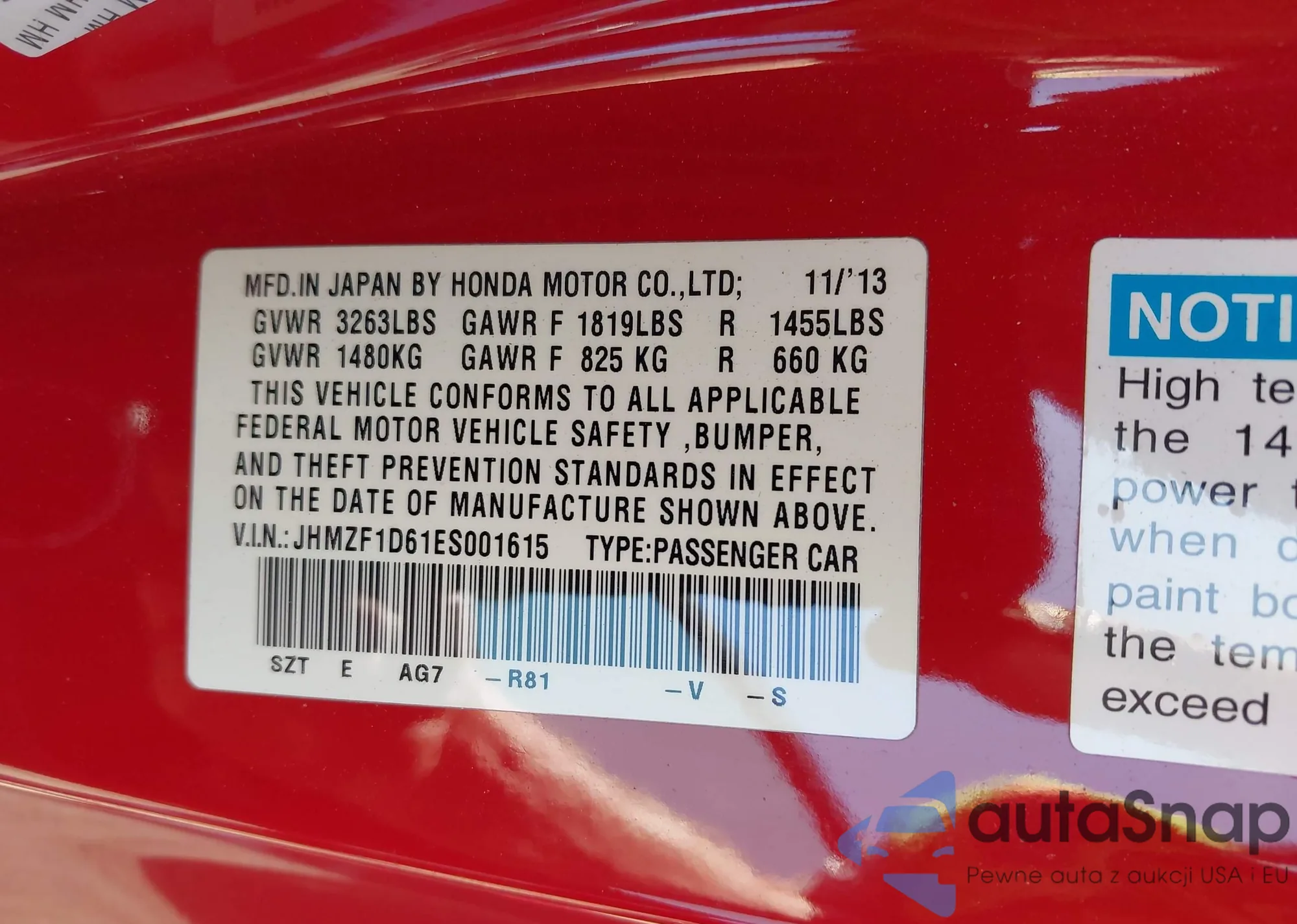 VIN: JHMZF1D61ES001615