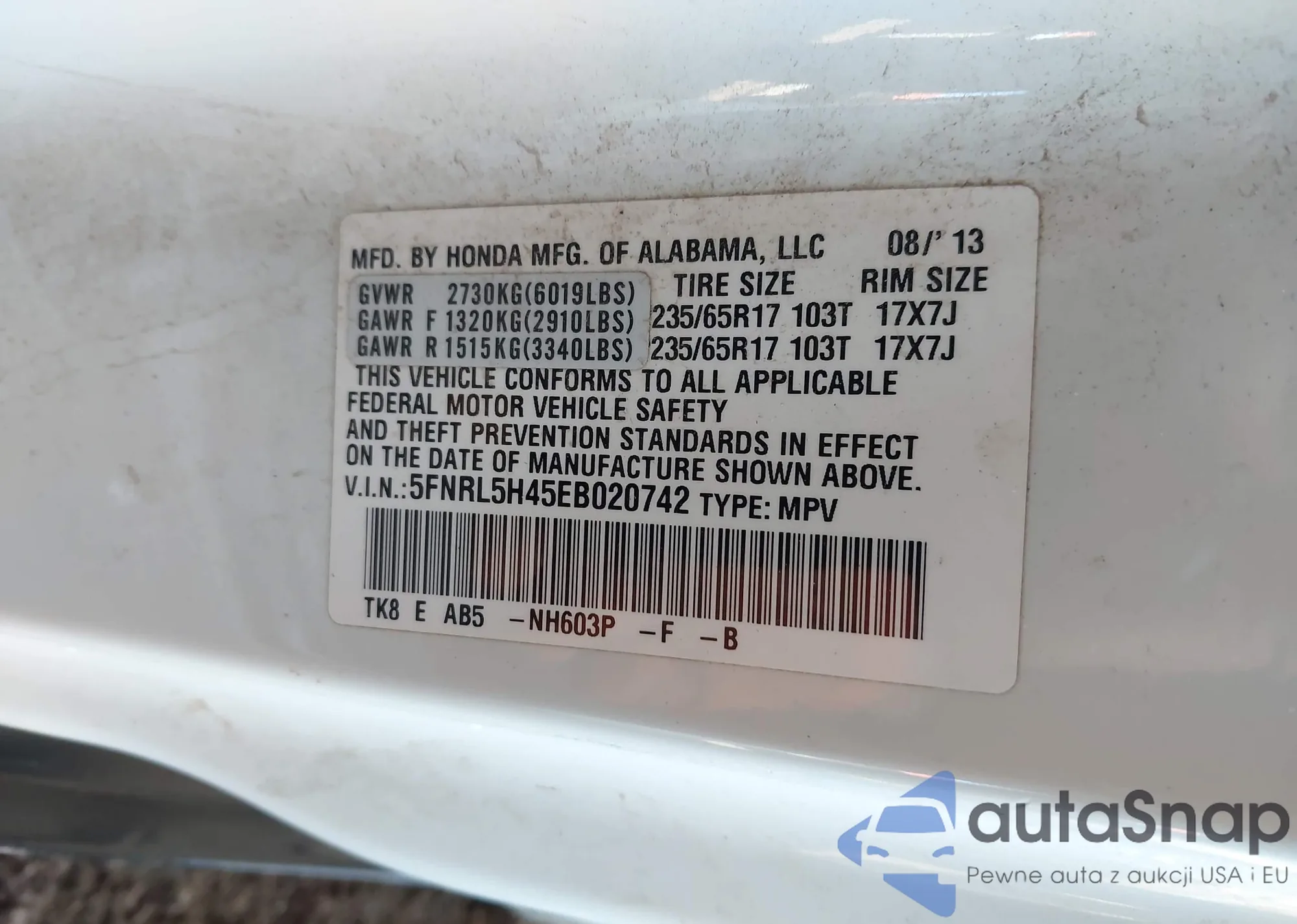 Автомобиль Honda Odyssey 2014 (VIN 5FNRL5H45EB020742) ранее не участвовал в торгах. Документы чистые, пробег соответствует или ниже среднего по рынку. Продаётся страховой компанией — рекомендуем покупку. Доставка в порт займет около 6–8 недель.