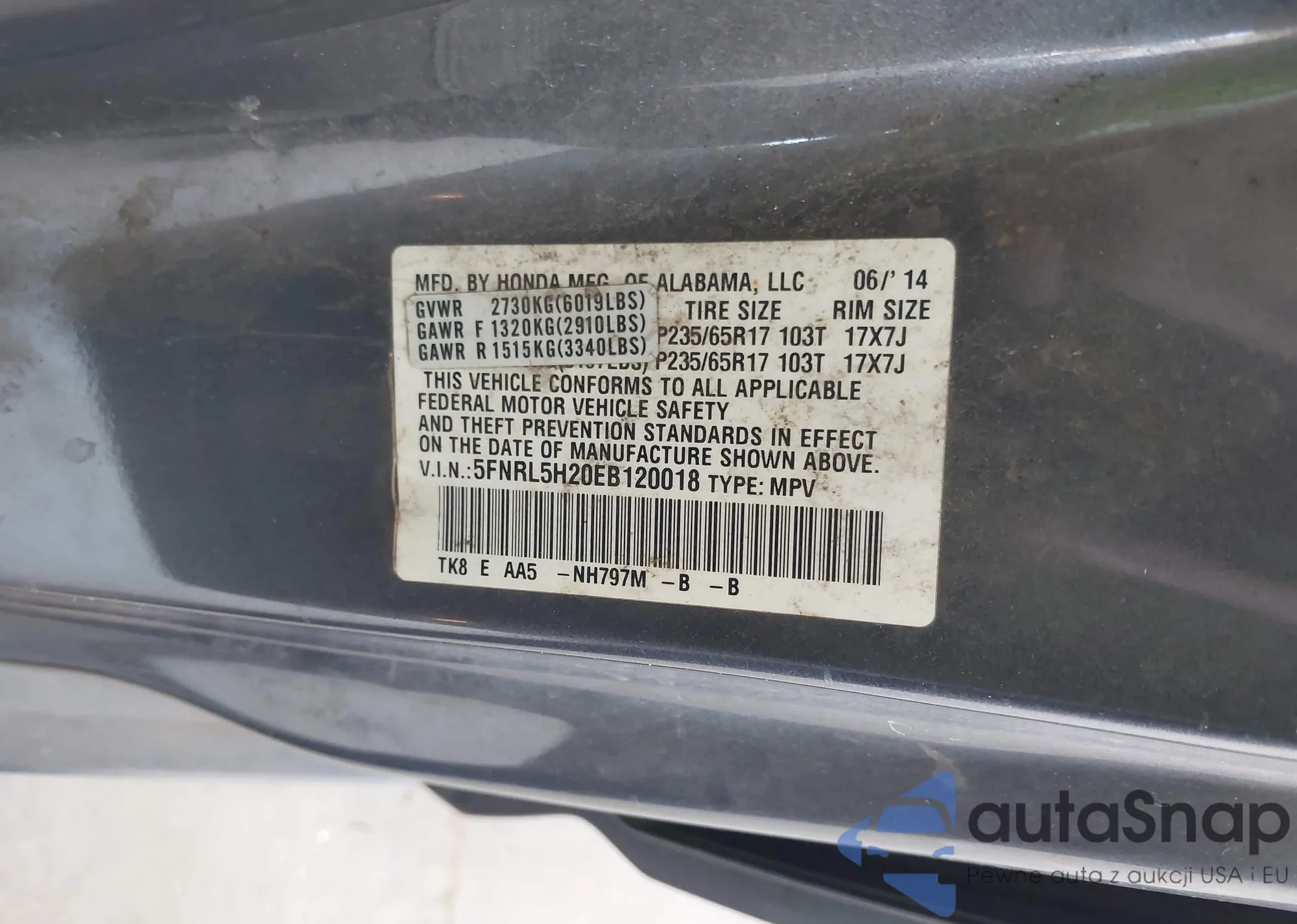 VIN: 5FNRL5H20EB120018