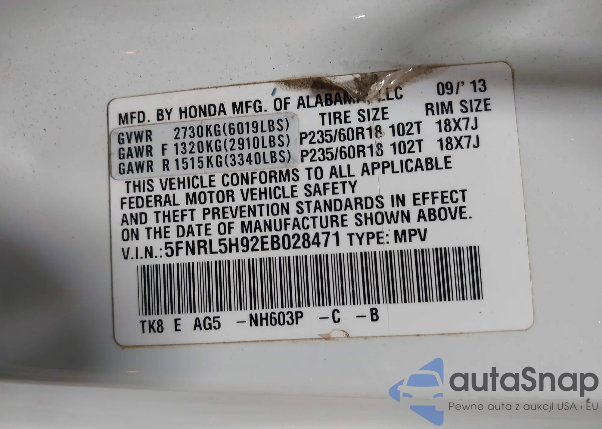 Автомобиль Honda Odyssey 2014 (VIN 5FNRL5H92EB028471) ранее не участвовал в торгах. Документы чистые, пробег соответствует или ниже среднего по рынку. Продаётся страховой компанией — рекомендуем покупку. Доставка в порт займет около 6–8 недель.