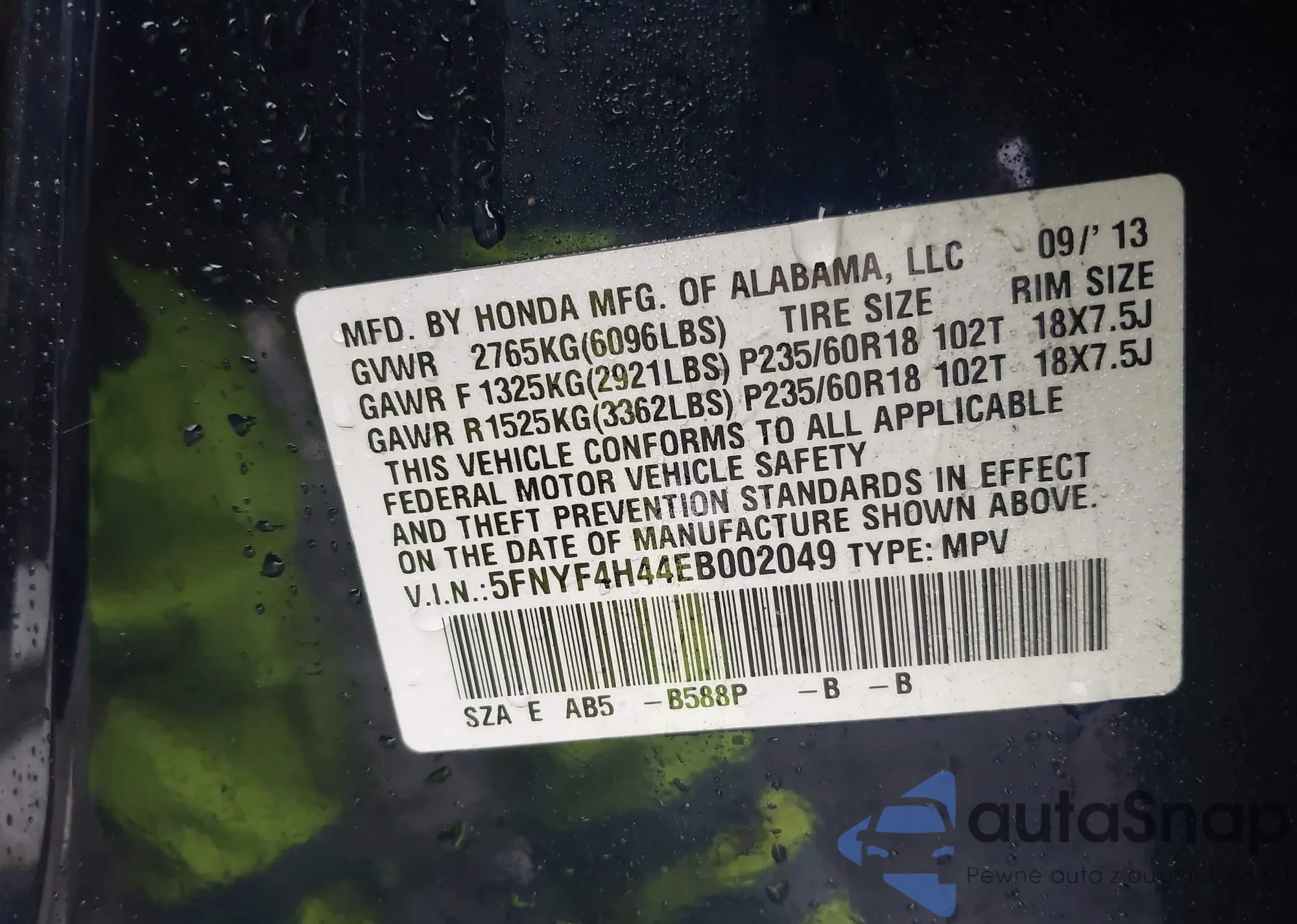 VIN: 5FNYF4H44EB002049