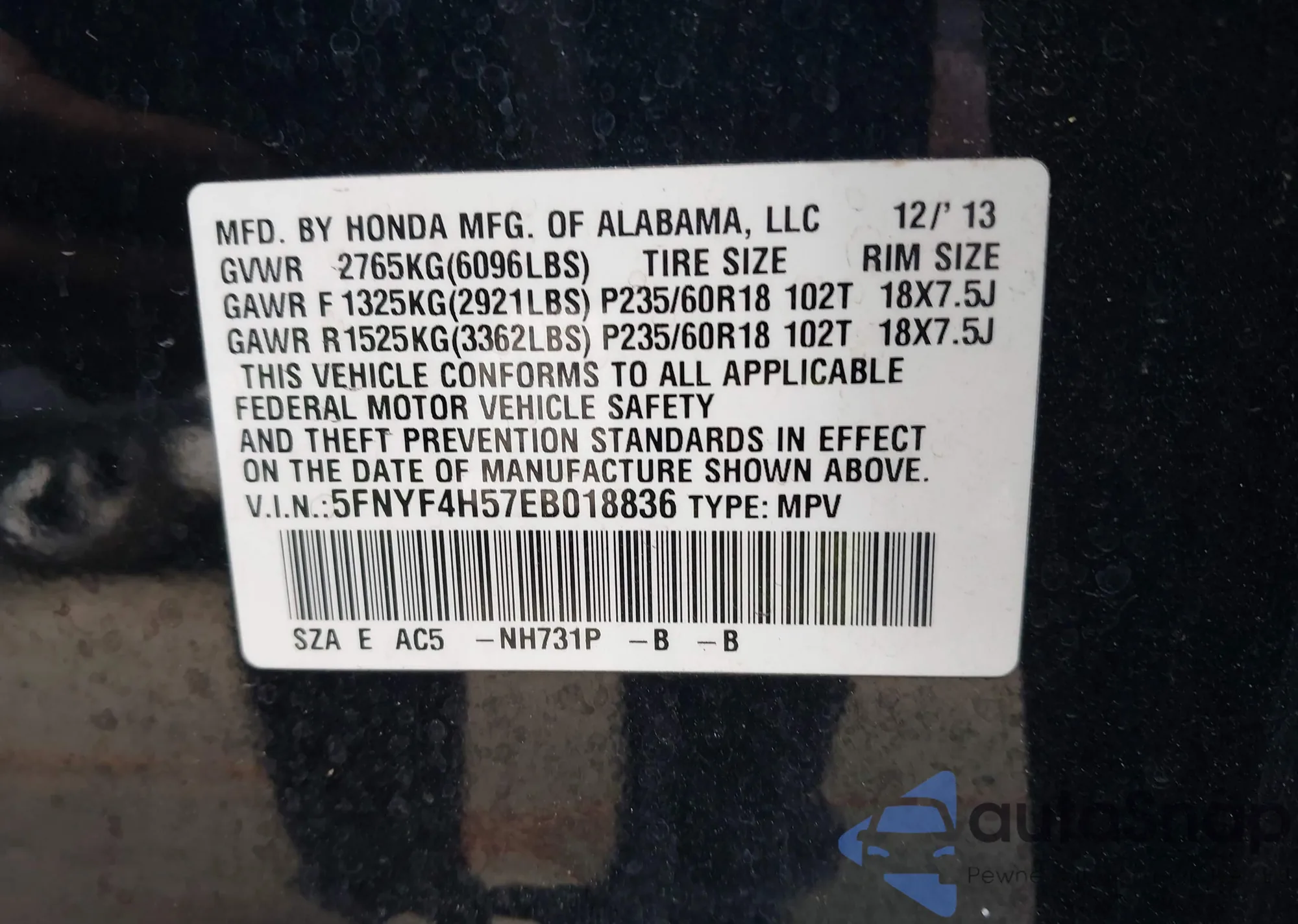 Автомобиль Honda Pilot 2014 (VIN 5FNYF4H57EB018836) ранее не участвовал в торгах. Документы чистые, пробег соответствует или ниже среднего по рынку. Продаётся страховой компанией — рекомендуем покупку. Доставка в порт займет около 6–8 недель.
