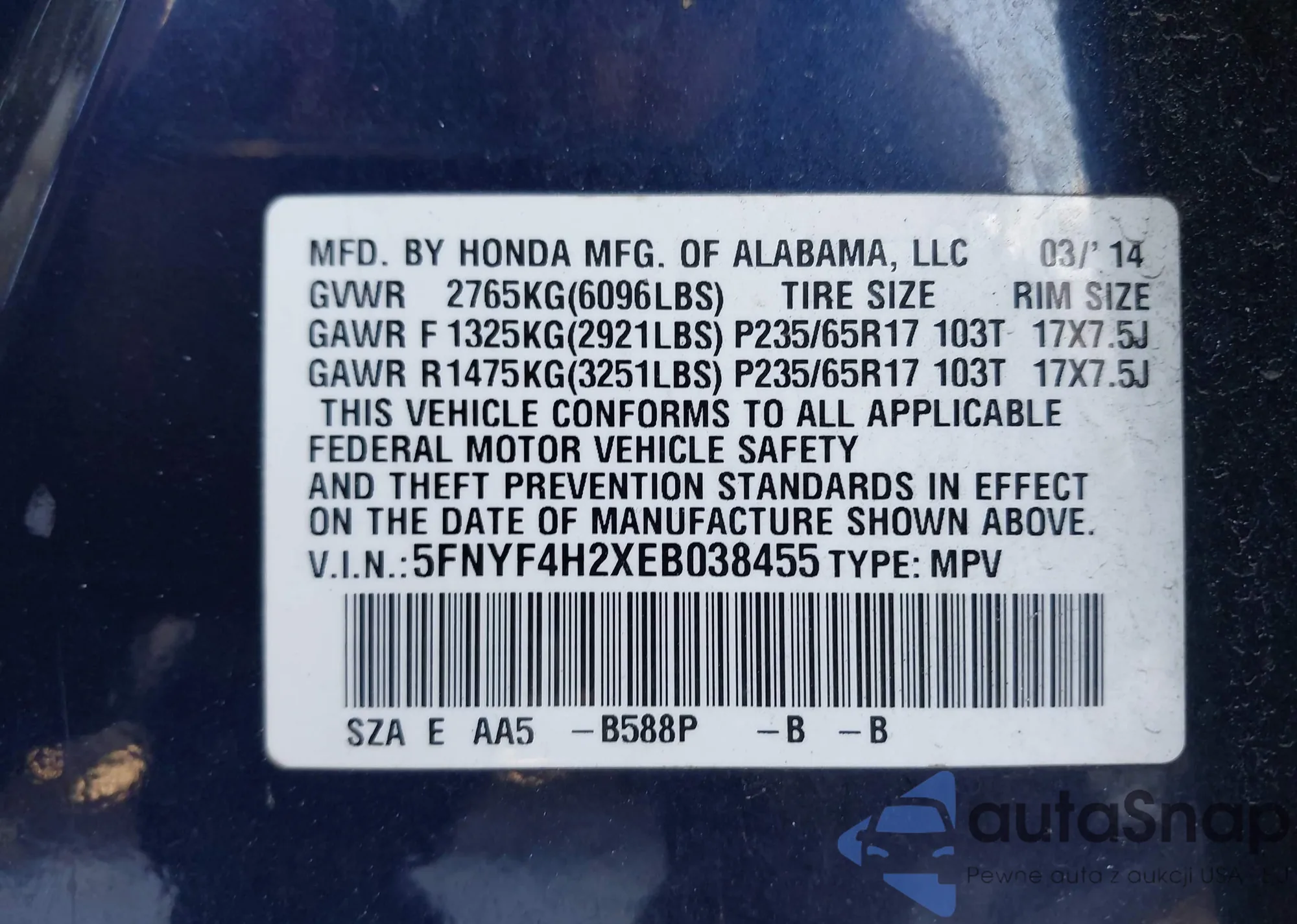 Автомобиль Honda Pilot 2014 (VIN 5FNYF4H2XEB038455) ранее не участвовал в торгах. Документы чистые, пробег соответствует или ниже среднего по рынку. Продаётся страховой компанией — рекомендуем покупку. Доставка в порт займет около 6–8 недель.