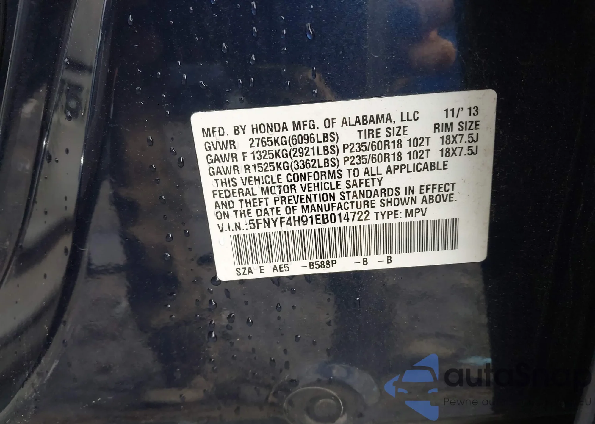 VIN: 5FNYF4H91EB014722