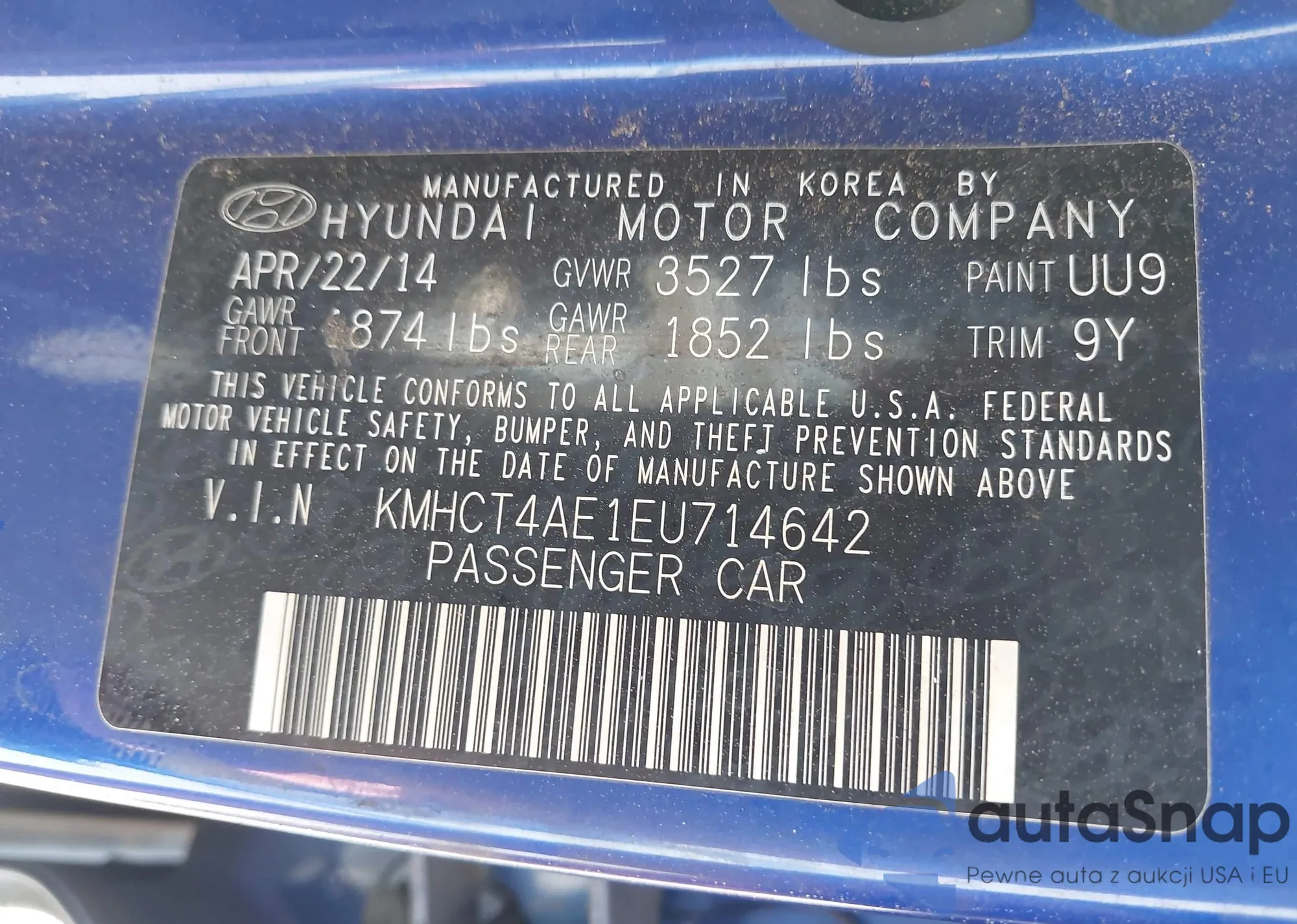 VIN: KMHCT4AE1EU714642