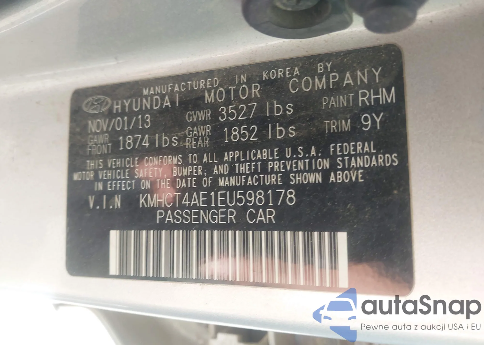 VIN: KMHCT4AE1EU598178
