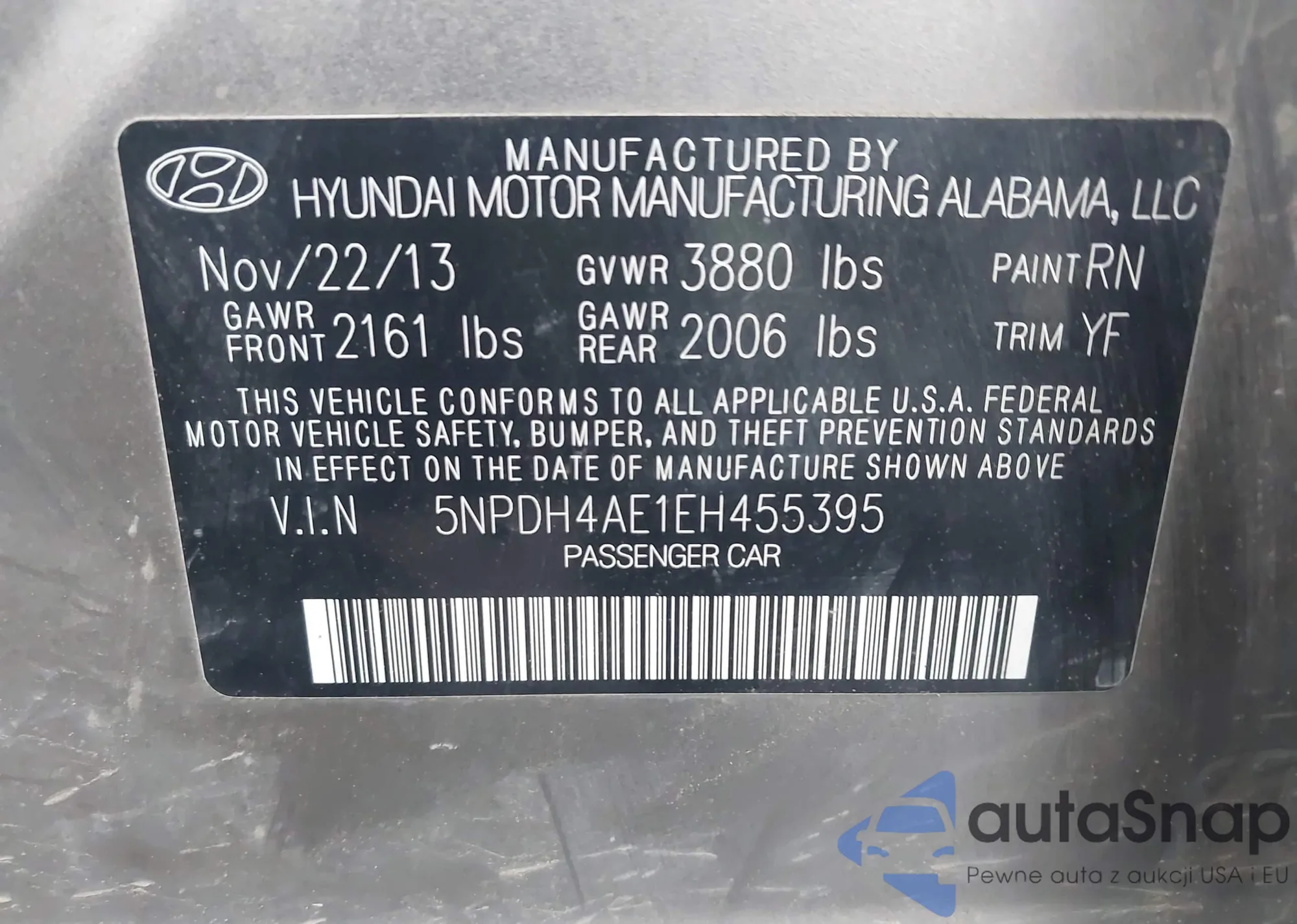 VIN: 5NPDH4AE1EH455395