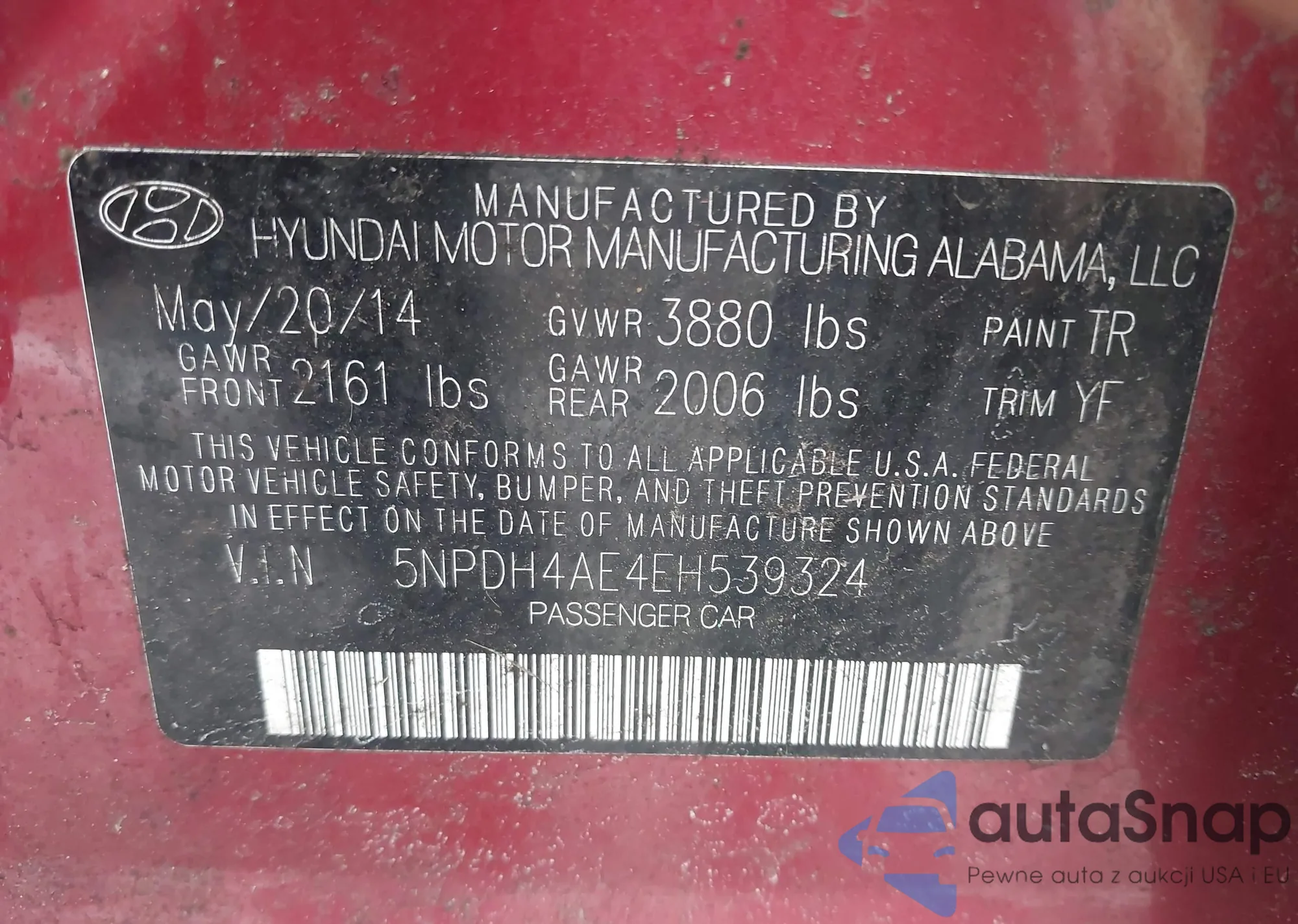 Автомобиль Hyundai Elantra 2014 (VIN 5NPDH4AE4EH539324) ранее не участвовал в торгах. Документы чистые, пробег соответствует или ниже среднего по рынку. Продаётся страховой компанией — рекомендуем покупку. Доставка в порт займет около 6–8 недель.