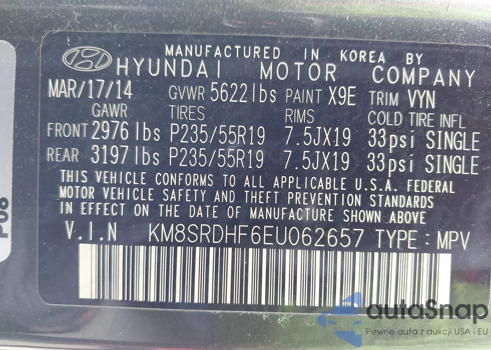 VIN: KM8SRDHF6EU062657