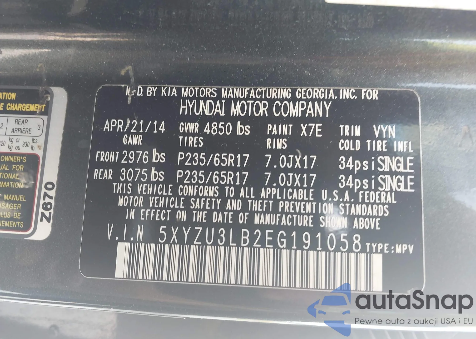 Автомобиль Hyundai Santa Fe 2014 (VIN 5XYZU3LB2EG191058) ранее не участвовал в торгах. Документы чистые, пробег соответствует или ниже среднего по рынку. Продаётся страховой компанией — рекомендуем покупку. Доставка в порт займет около 6–8 недель.