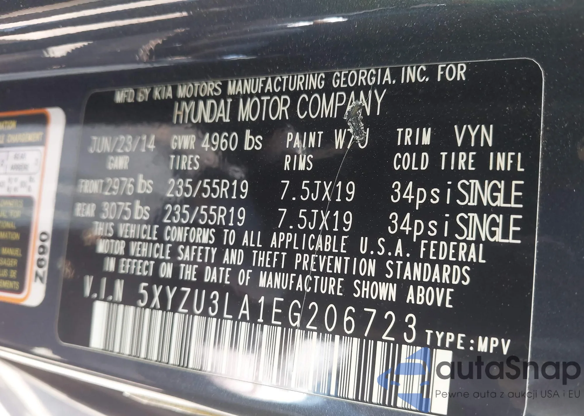 VIN: 5XYZU3LA1EG206723