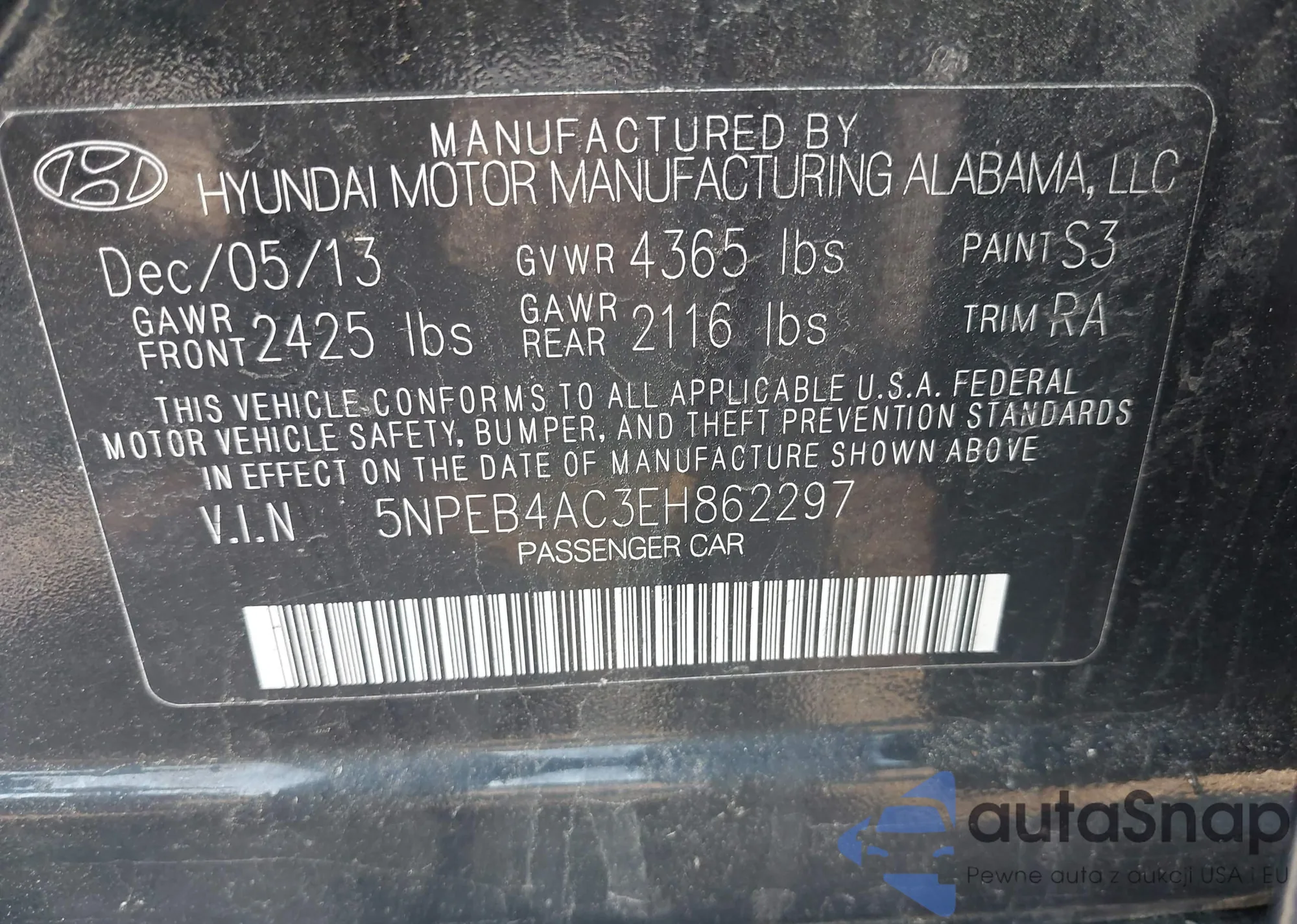 VIN: 5NPEB4AC3EH862297
