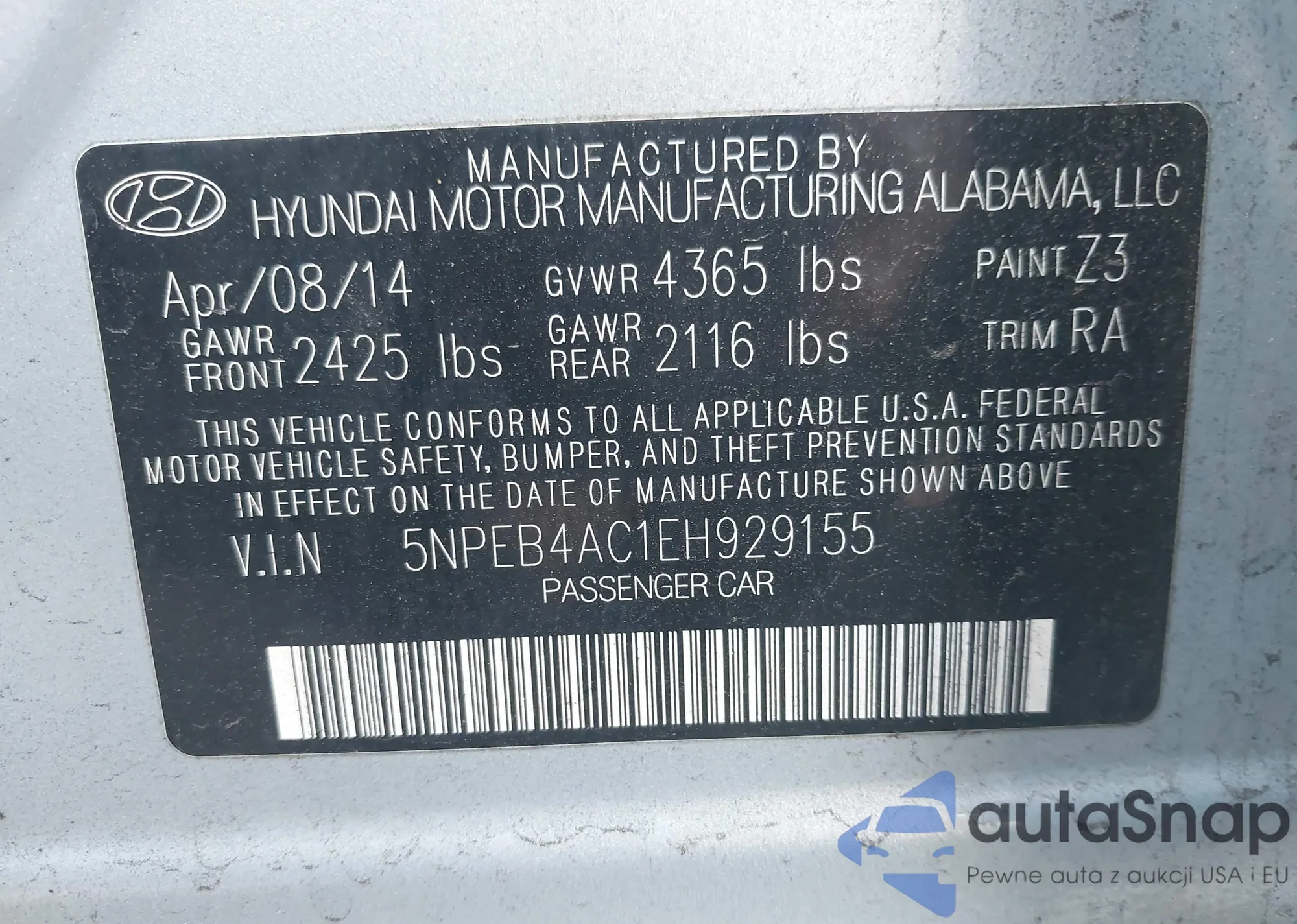 VIN: 5NPEB4AC1EH929155