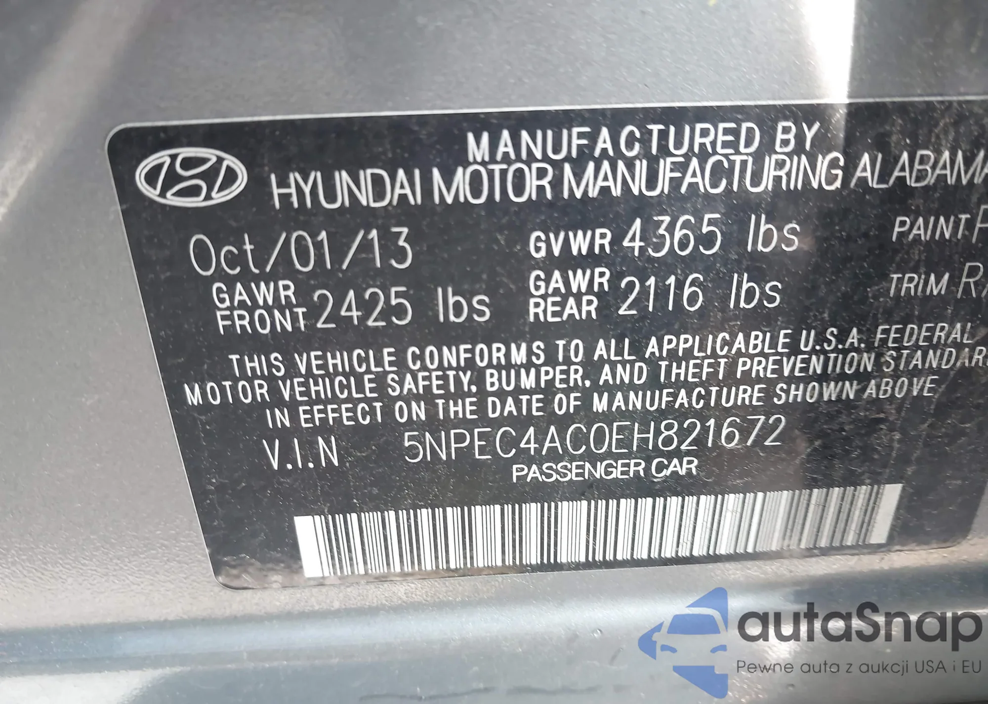 VIN: 5NPEC4AC0EH821672