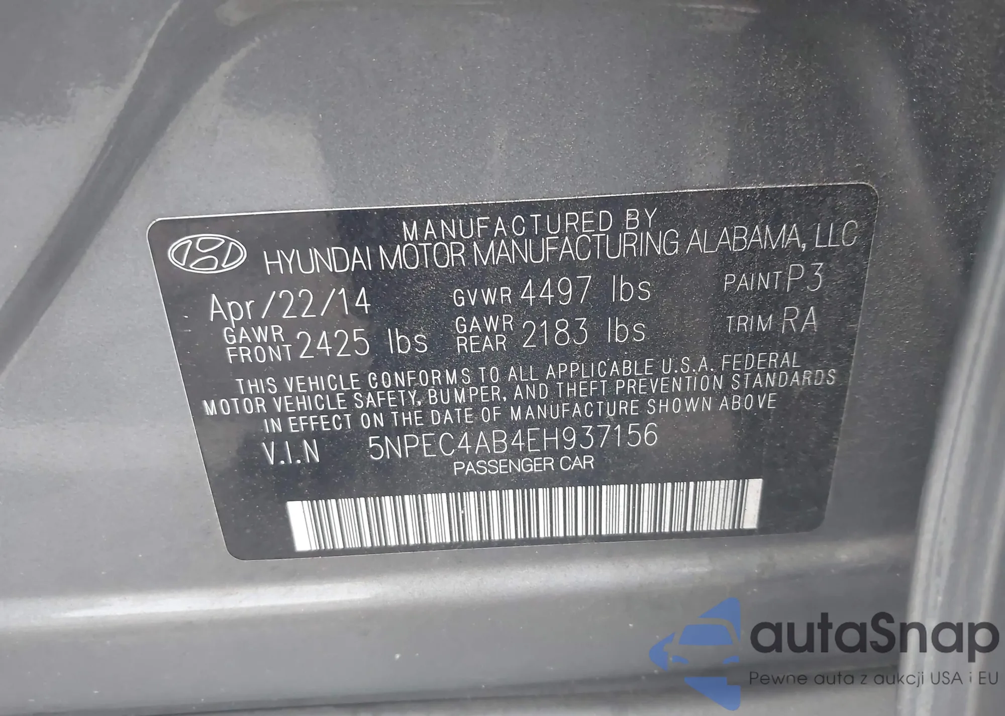VIN: 5NPEC4AB4EH937156