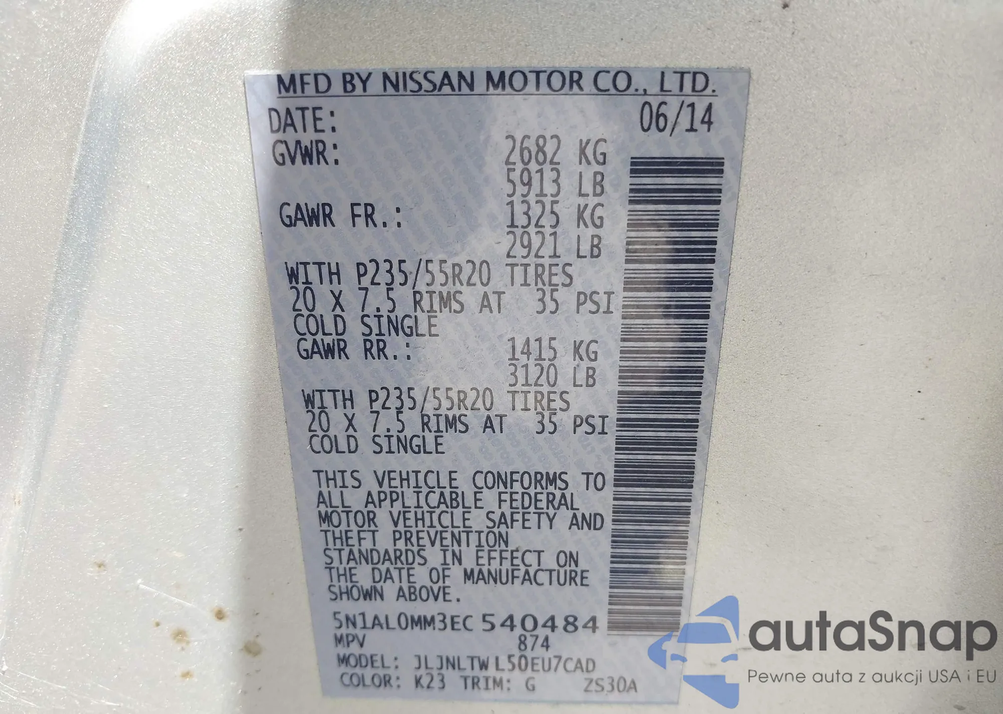 VIN: 5N1AL0MM3EC540484