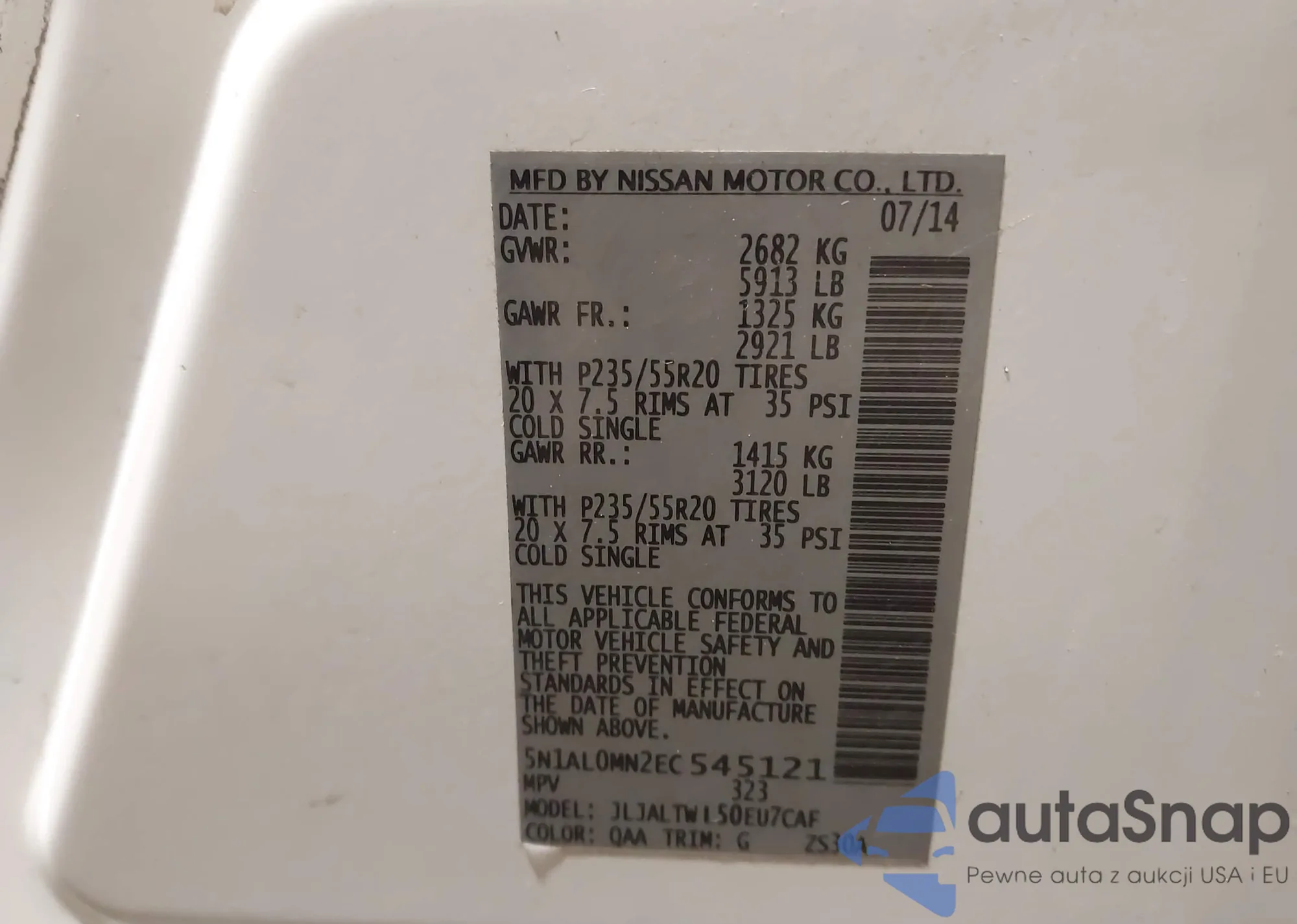 • VIN: 5N1AL0MN2EC545121