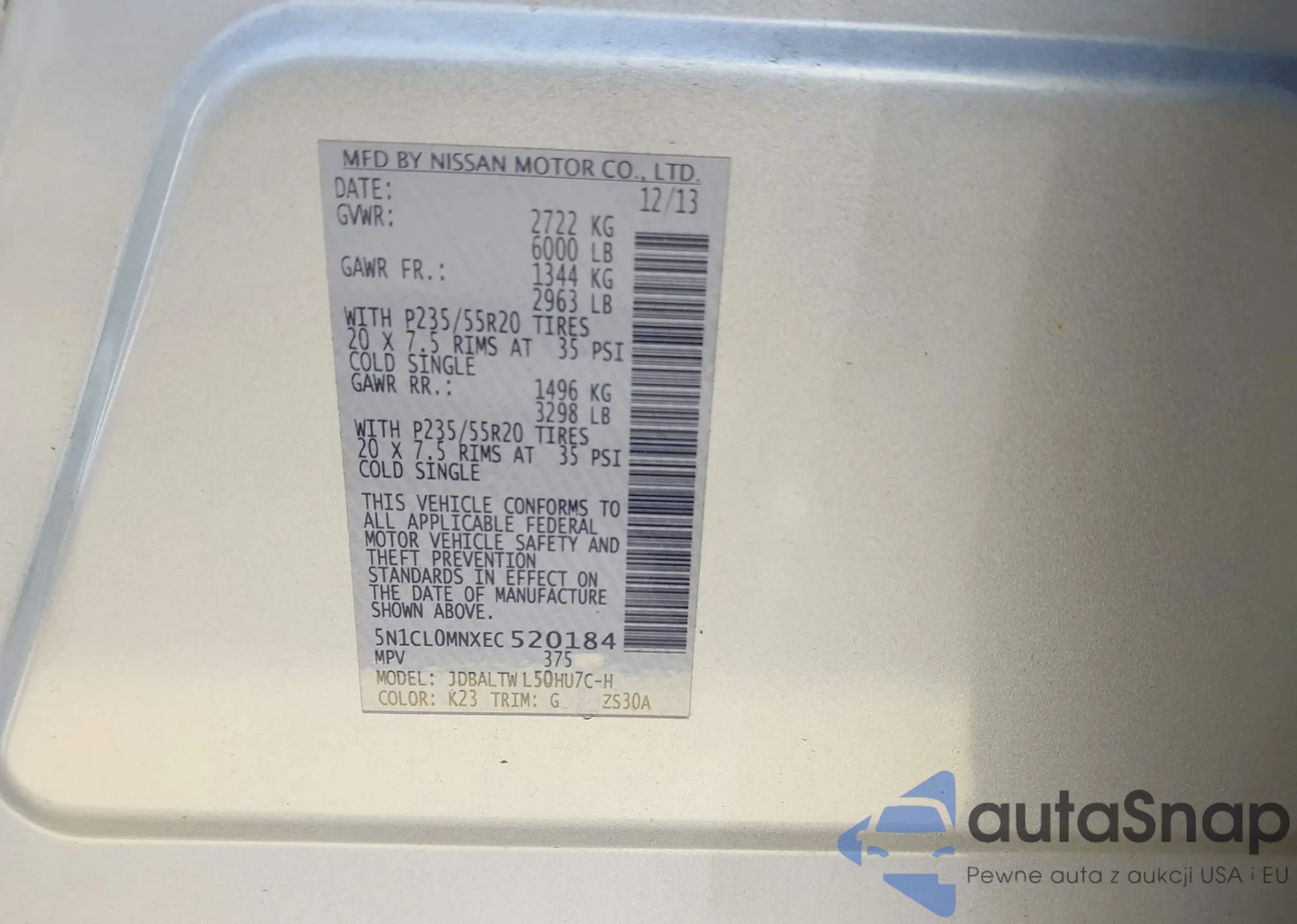 • VIN: 5N1CL0MNXEC520184