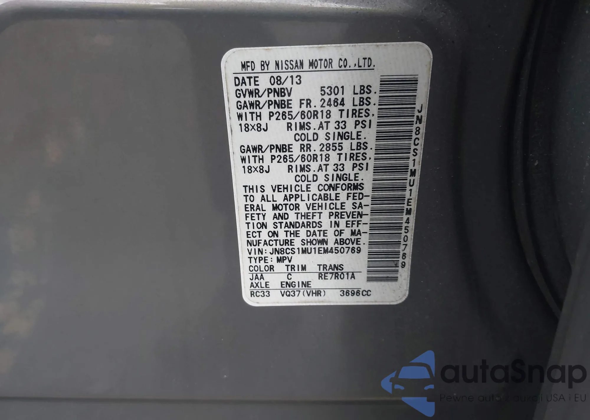 • VIN: JN8CS1MU1EM450769
