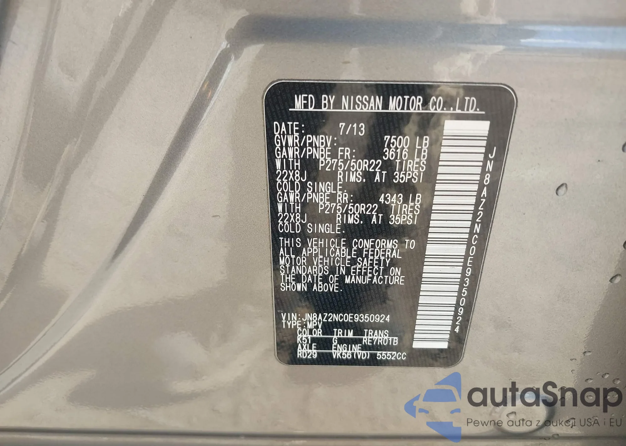 VIN: JN8AZ2NC0E9350924