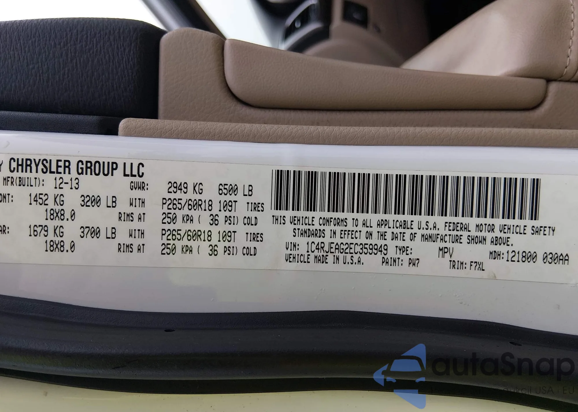 Автомобиль Jeep Grand Cherokee 2014 (VIN 1C4RJEAG2EC359949) продаётся непроверенным продавцом. Рекомендуем проверить отчет Carfax и подтвердить возможность регистрации перед покупкой.