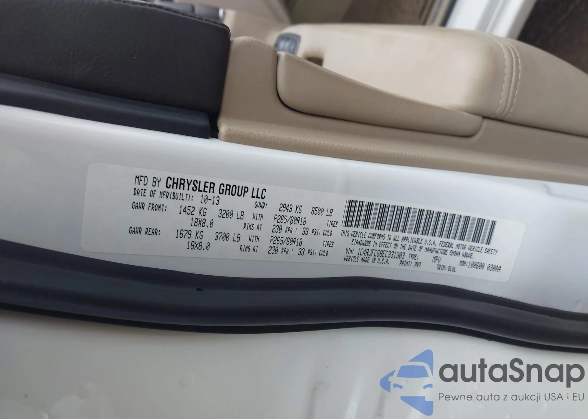 Автомобиль Jeep Grand Cherokee 2014 (VIN 1C4RJFCG8EC331303) ранее не участвовал в торгах. Документы чистые, пробег соответствует или ниже среднего по рынку. Продаётся страховой компанией — рекомендуем покупку. Доставка в порт займет около 6–8 недель.