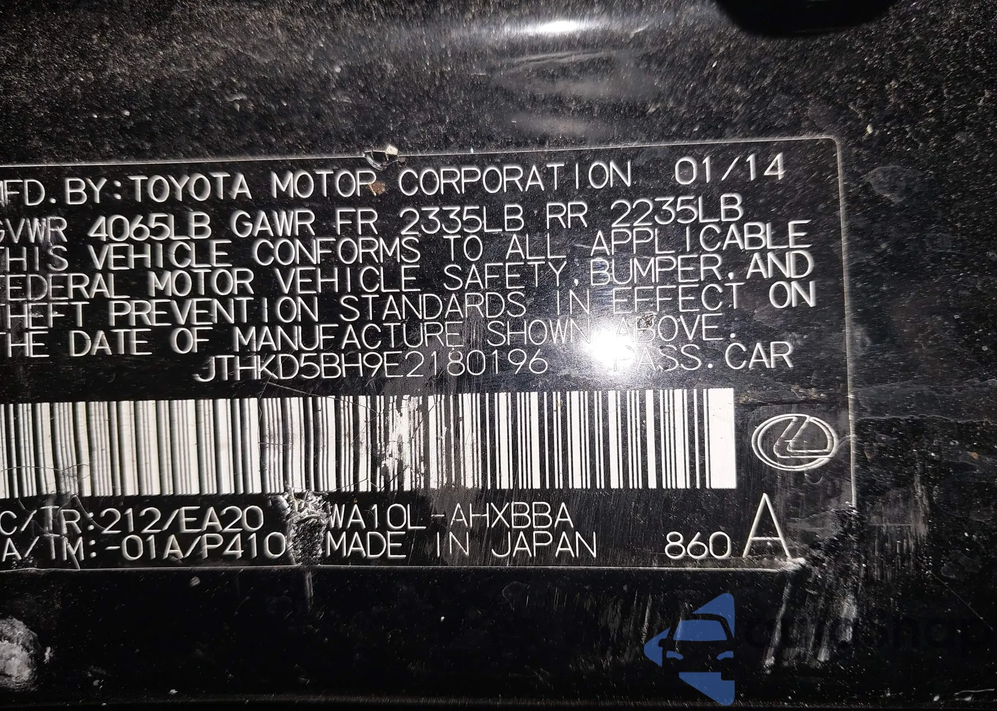 VIN: JTHKD5BH9E2180196